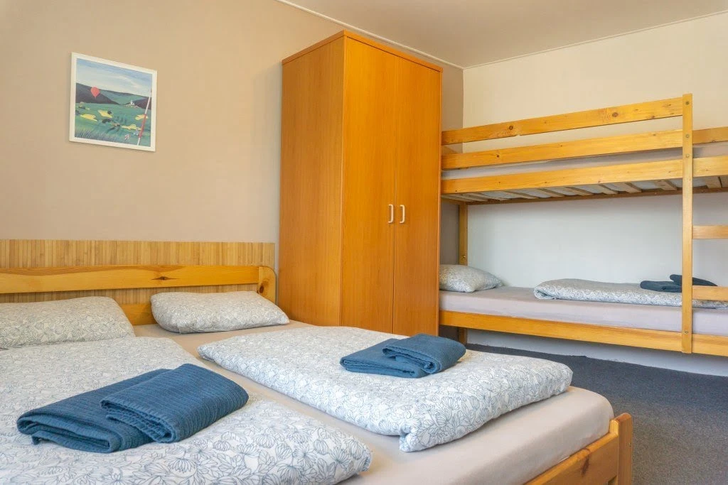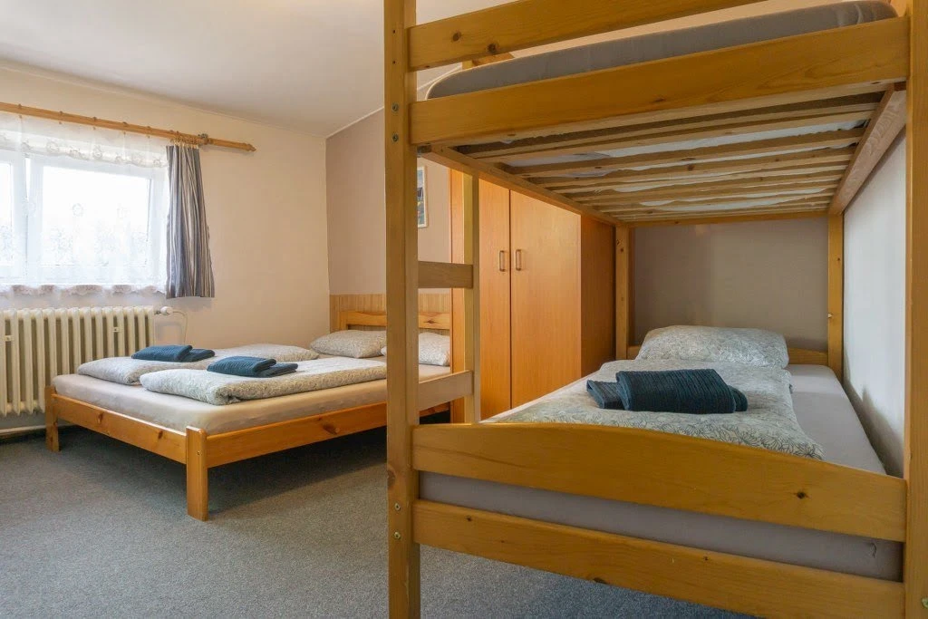 - 1x čtyřlůžkový s manželskou postelí a palandou