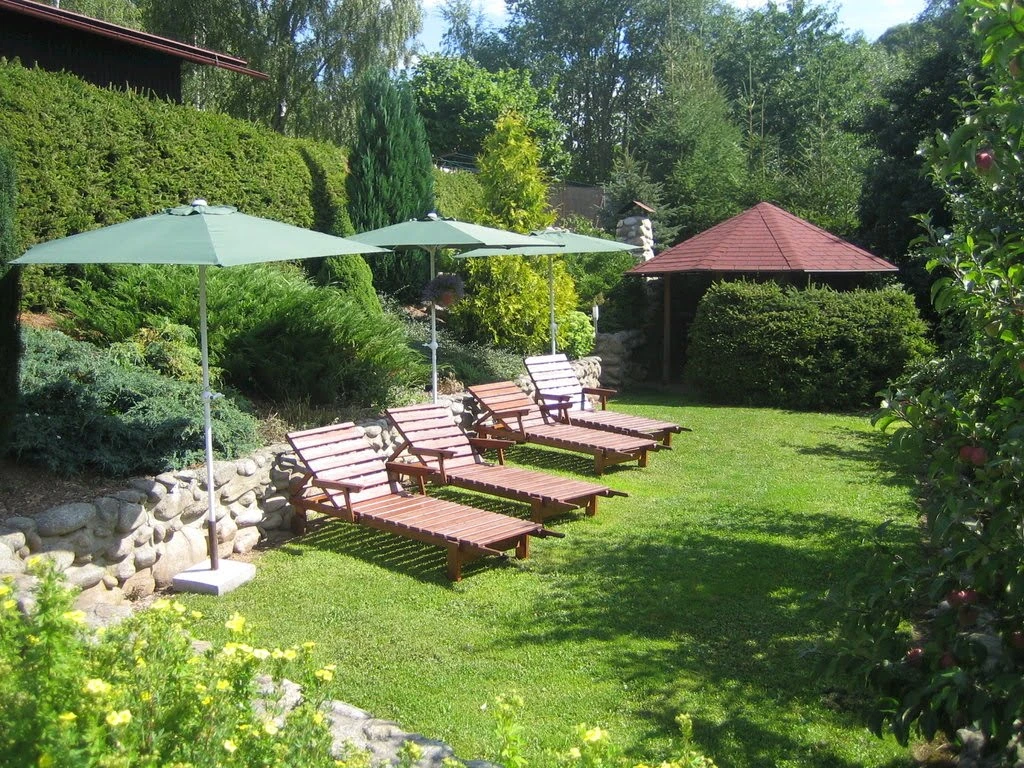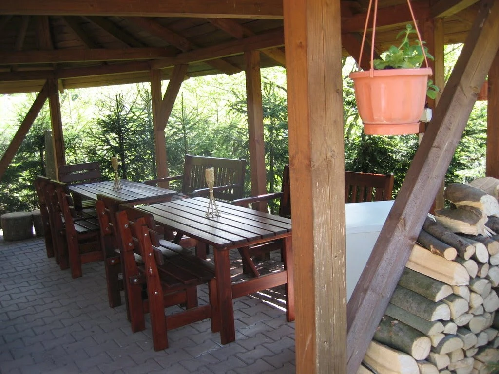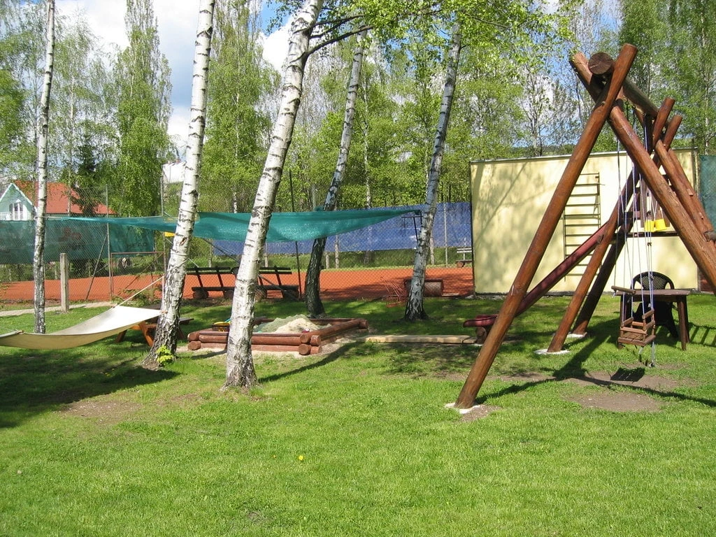 K penzionu patří velká zahrada s bazénem, zahradní houpačkou, jezírkem a terasou s lehátky. Při pěkném počasí si společně něco ugrilujete na grilu, v krbu nebo si připravíte guláš v kotlíku. Na večer si s dětmi v ohništi opečete špekáčky. K dispozici je také altán a dětské hřiště vybavené pískovištěm, domečkem, skluzavkou, trampolínou a dospělé potěší tenisový kurt.