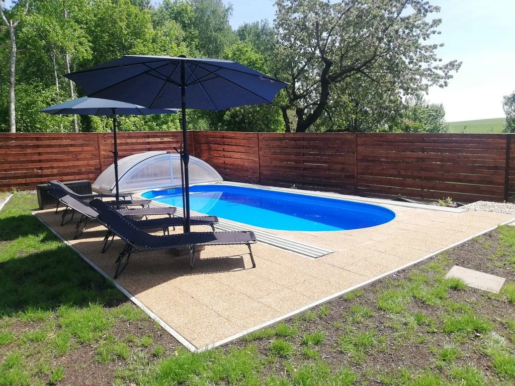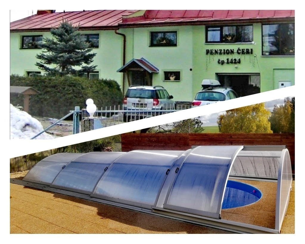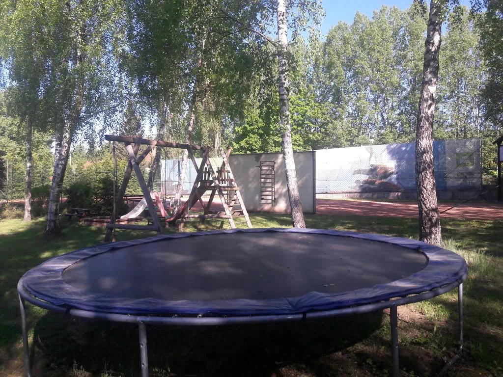 Venkovní bazén , dětský koutek , trampolína , travnaté hřiště.