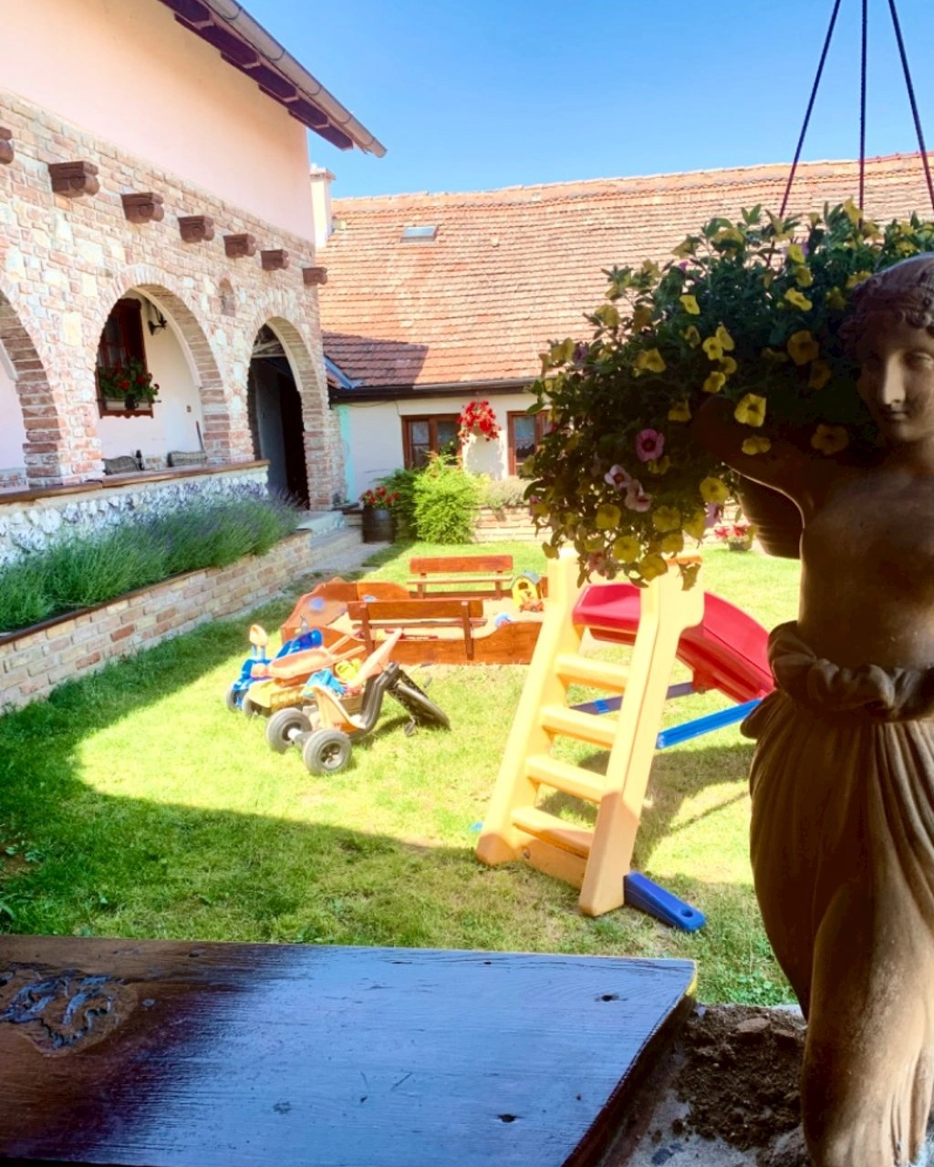 Součástí penzionu je upravený dvůr s pergolou a krbem pro grilování. Cena ubytování zahrnuje parkovací místo. Penzion je vstřícný i k majitelům psů, kteří si mohou vzít svého domácího mazlíčka s sebou. Pro děti jsou připraveny venkovní atrakce jako skluzavka a houpačka.