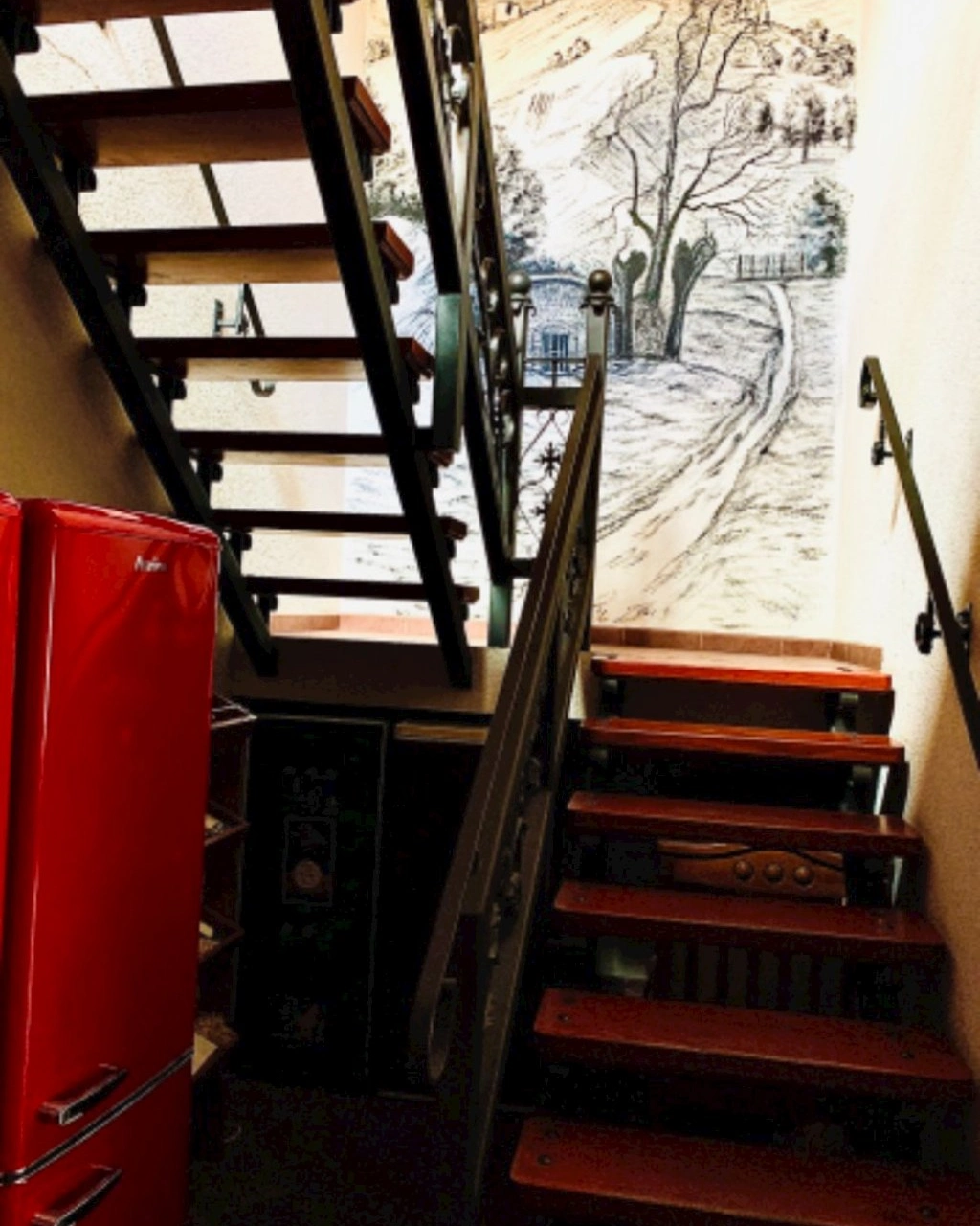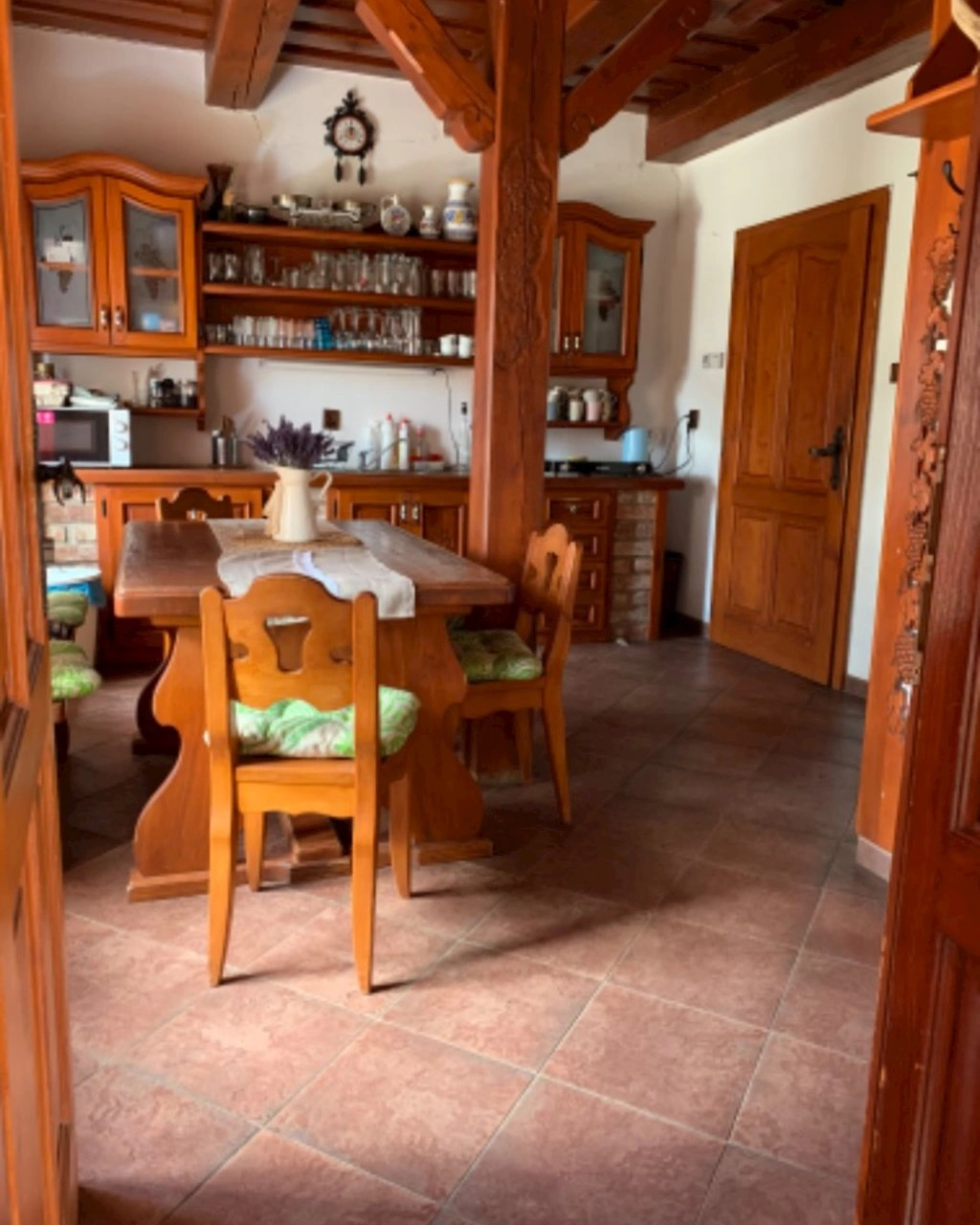 - Venkovský styl doplňků, přiznané zdi a dřevěné trámy