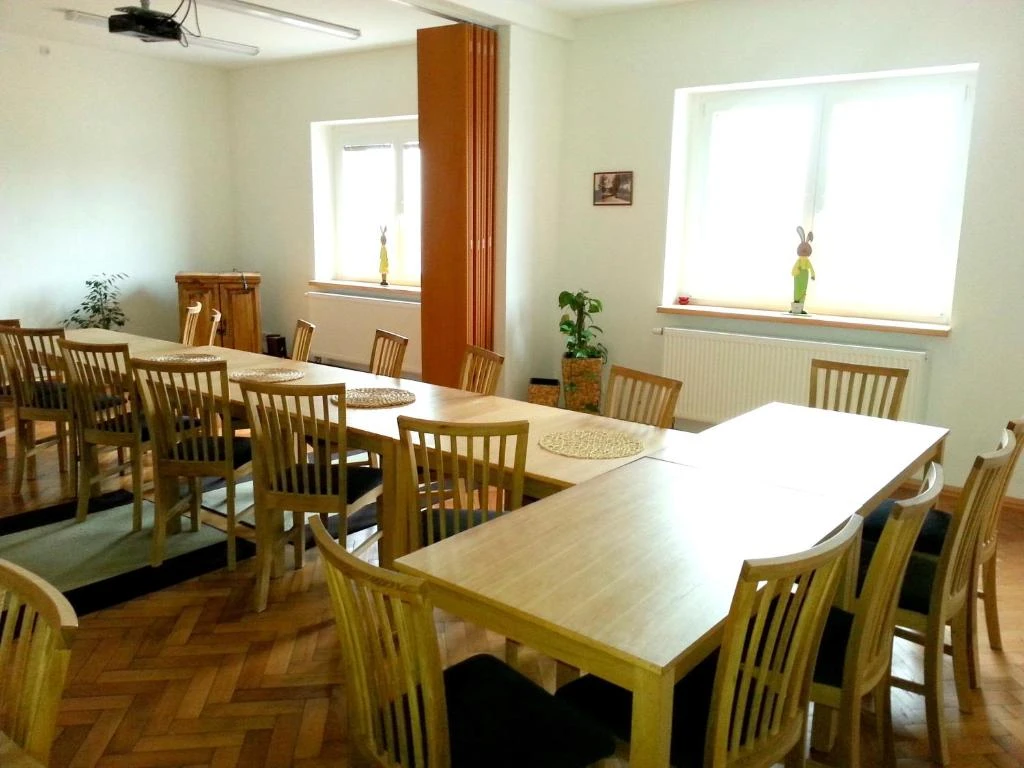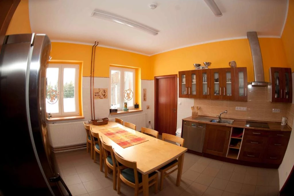 K dispozici je společenská místnost s jídelním sezením a možností zapůjčení projektoru. Pro hosty je připravena plně vybavená sdílená kuchyň, která zahrnuje elektrickou troubu, mikrovlnnou troubu, rychlovarnou konvici, ledničku, mrazničku, kávovar a myčku.