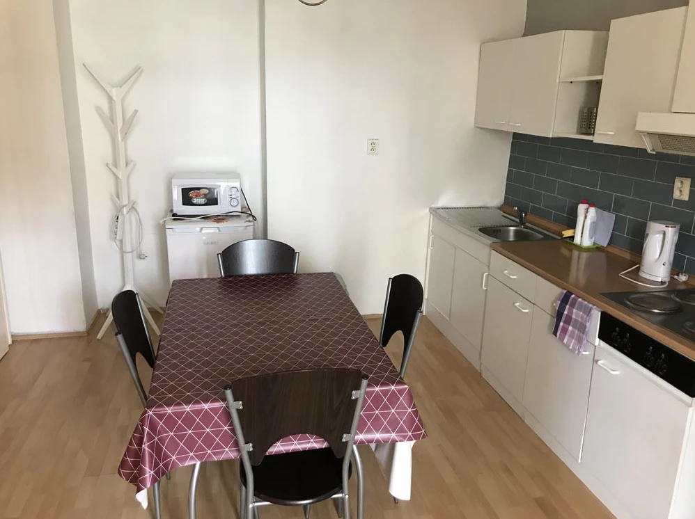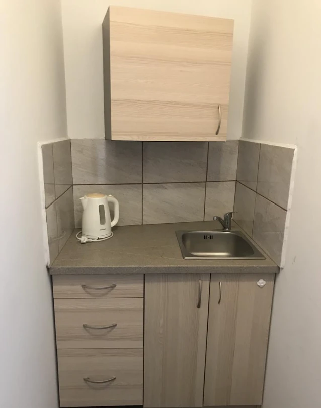 - Společná kuchyň (mikrovlnná trouba, rychlovarná konvice, lednice, nádobí) – pro ostatní pokoje