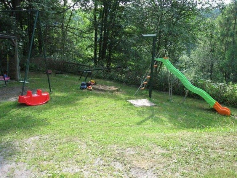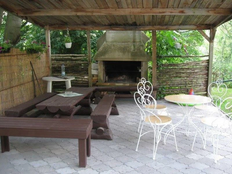Ve venkovním areálu je zahrada s posezením a s krbem, děti se zabaví na dětských houpačkách.