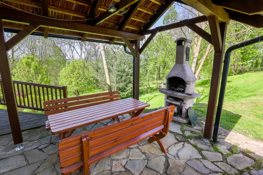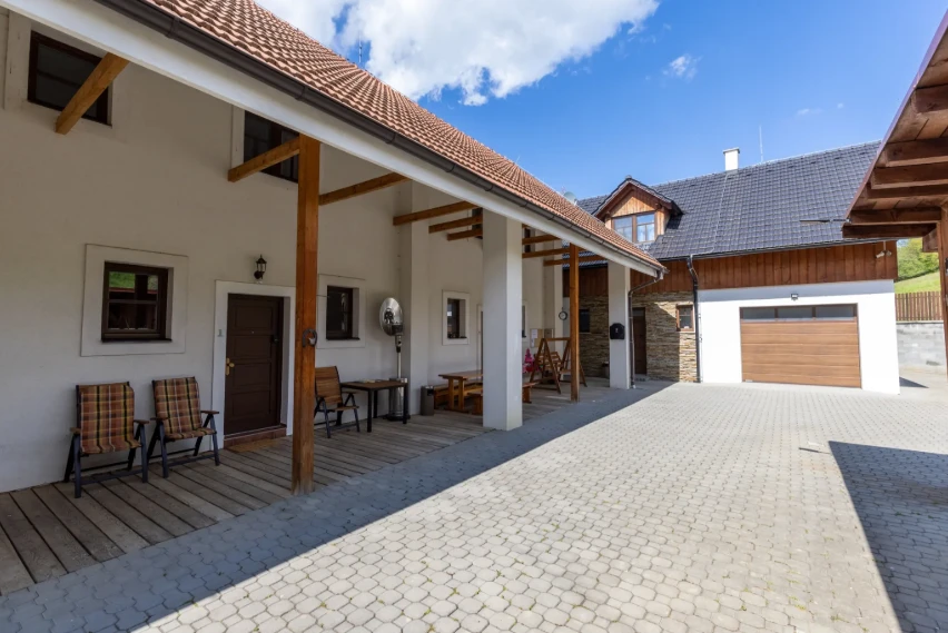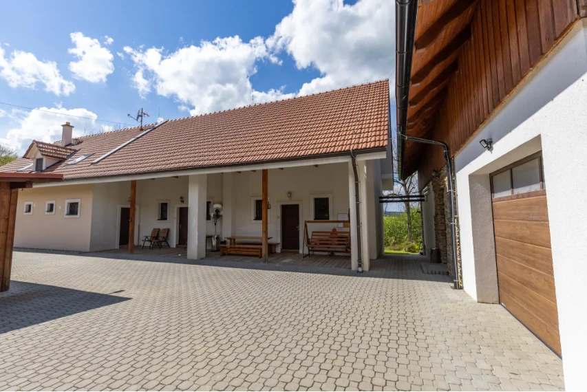 Hosté mohou využít venkovní posezení s grilem, ohniště s připraveným dřevem, pingpongový stůl, hřiště pro fotbal, nohejbal, volejbal a basketbal a dětské hřiště s houpačkami, skluzavkou a pískovištěm. Domácí zvířata jsou povolena po domluvě. Parkování je zajištěno přímo u objektu.