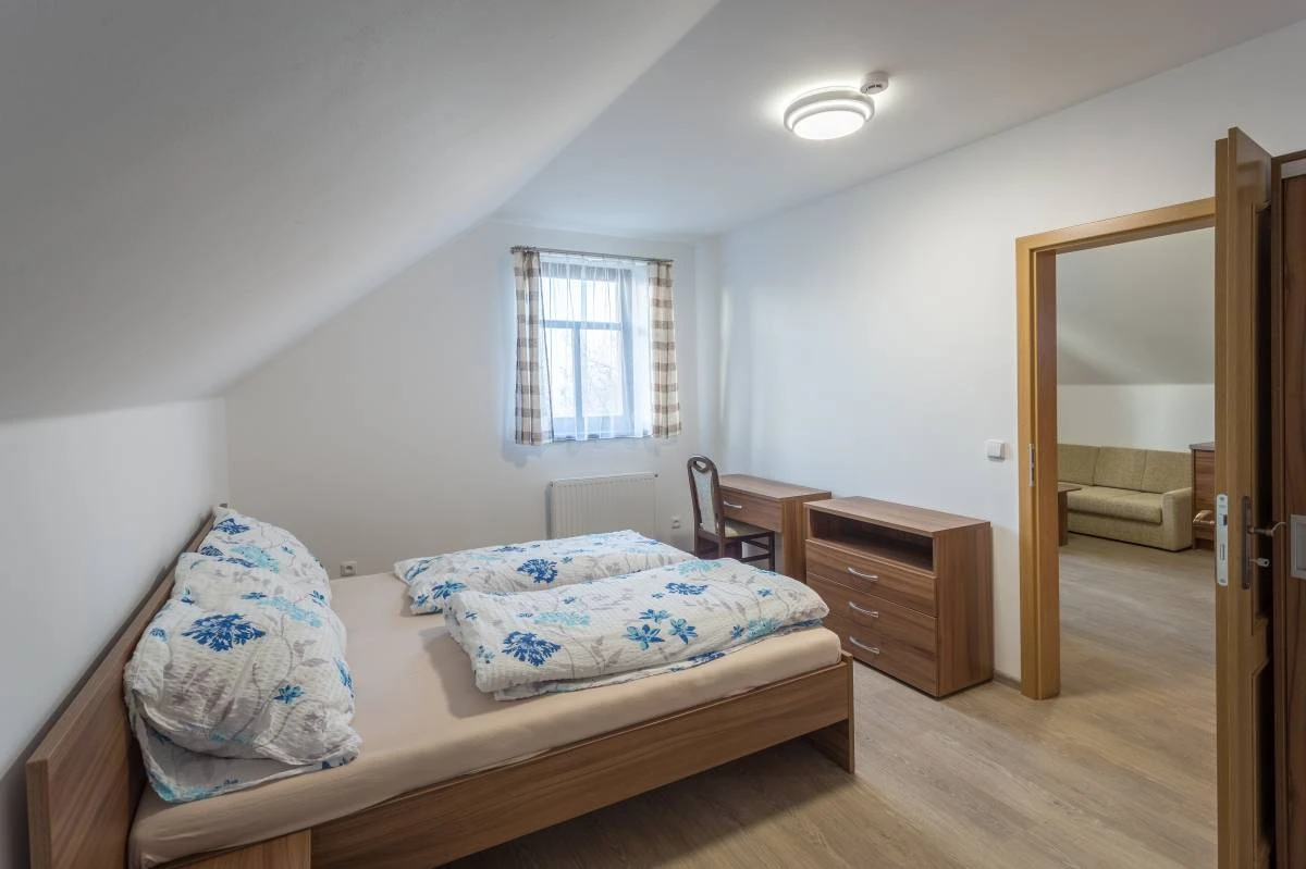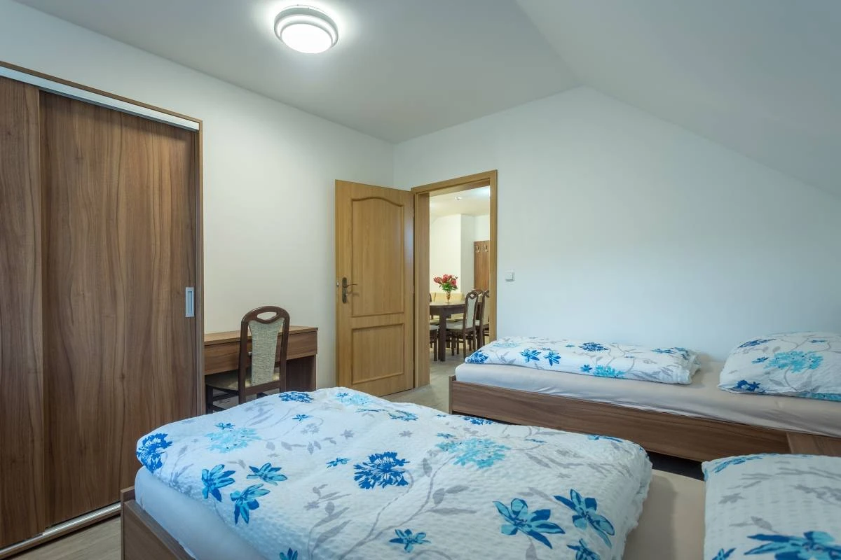 - Ložnice s manželskou postelí a dvěma samostatnými lůžky.