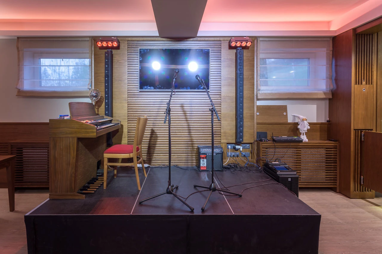 Součástí penzionu je společenská místnost s barem a posezením, vhodná pro pořádání firemních akcí, rodinných oslav i svatebních hostin. V objektu je také k dispozici nové multifunkční hřiště pro fotbal, nohejbal, volejbal a basketbal, pingpongový stůl, dětské hřiště s houpačkami, domek se skluzavkou a pískoviště. Hosté mohou využít gril na dřevěné uhlí (uhlí k dispozici za poplatek) a ohniště s připraveným dřevem zdarma.