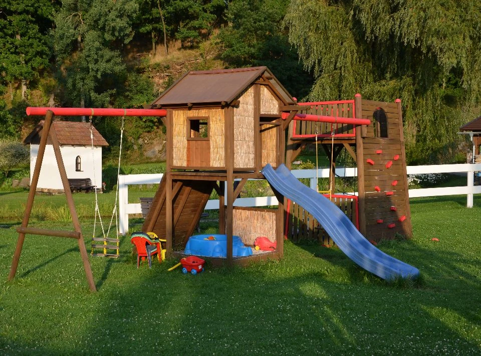 Parkování v areálu a připojení k internetu jsou u nás samozřejmostí a k dispozici zcela zdarma. Disponujeme vnitřním vyhřívaným bazénem se slanou vodou, který je v ceně ubytování. Venkovní altán s krbem Vám poslouží k večernímu grilování nebo klidnému posezení ze letních teplých nocí s rodinou či přáteli. Dále krásnou romantickou atmosféru dodává penzionu též přírodní jezírko s ostrůvkem a vysvěcenou kapličkou, kolem protékající potok po hranici areálu nebo klidná hladina rybníka za jezdeckým areálem s jízdárnou.