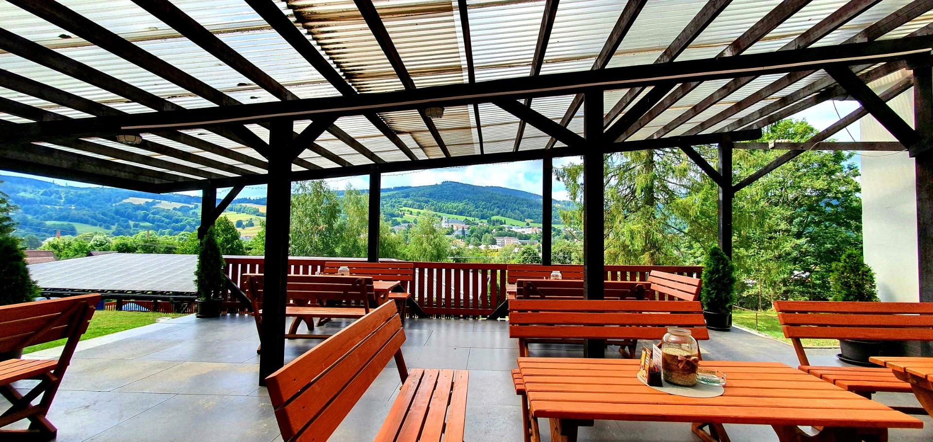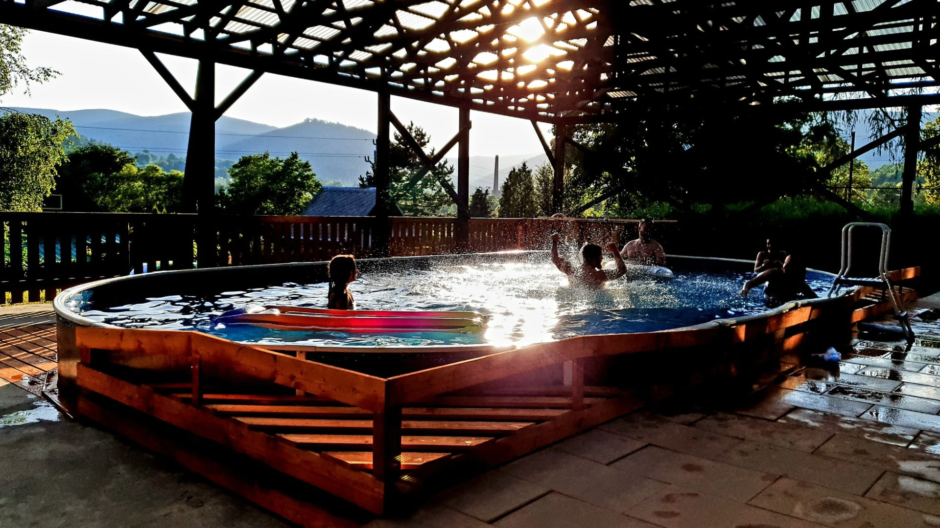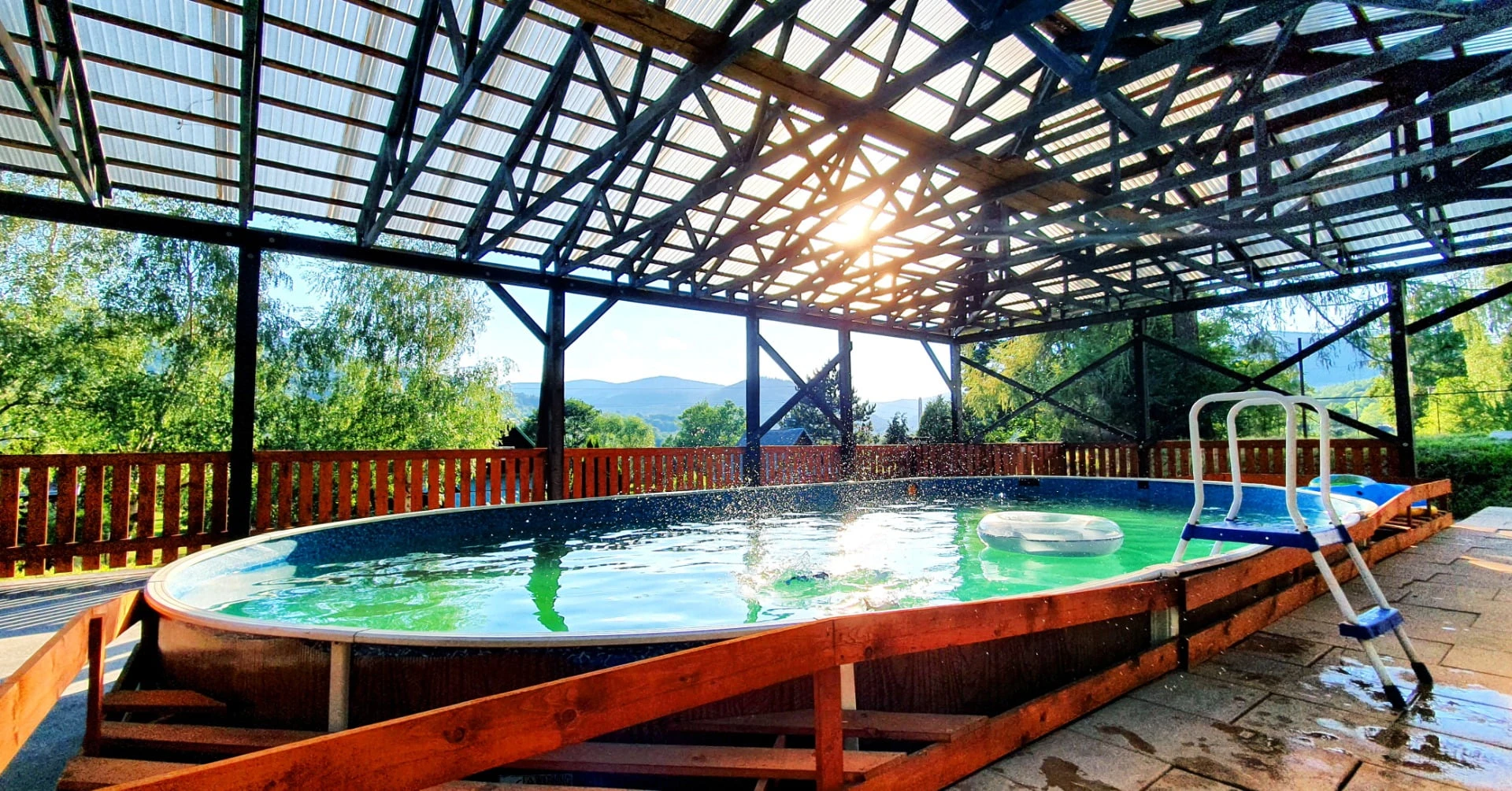 V penzionu Stavař můžete využít venkovní bazén s příjemným posezením a výhledem na okolní přírodu.