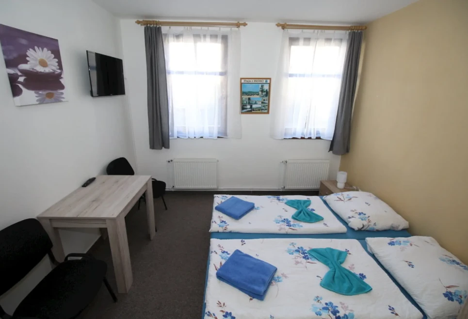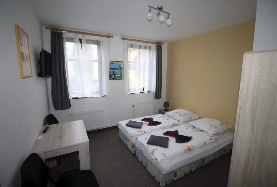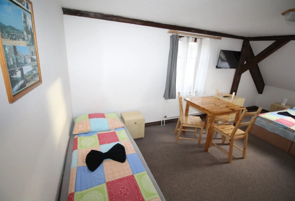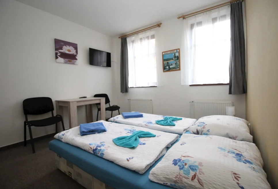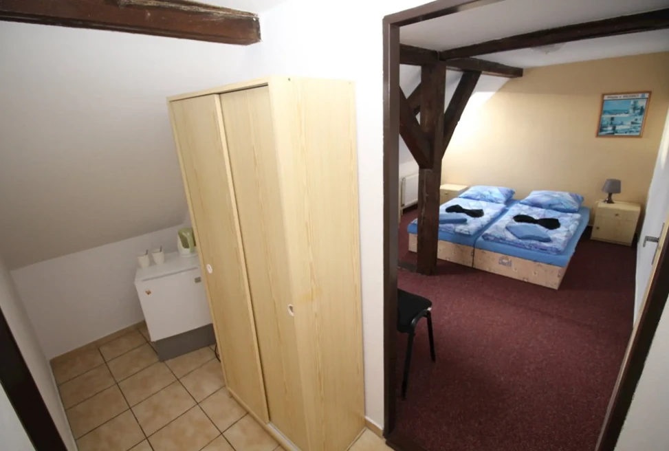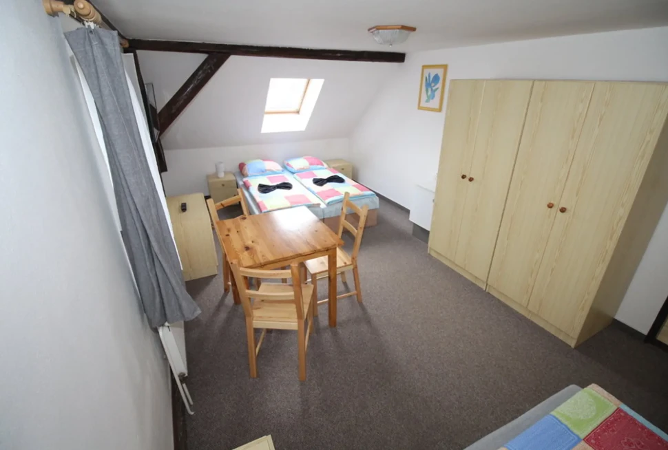 - Dvoulůžkový pokoj č. 12: 500 Kč/osoba/noc (min. 2 osoby, 1 noc)