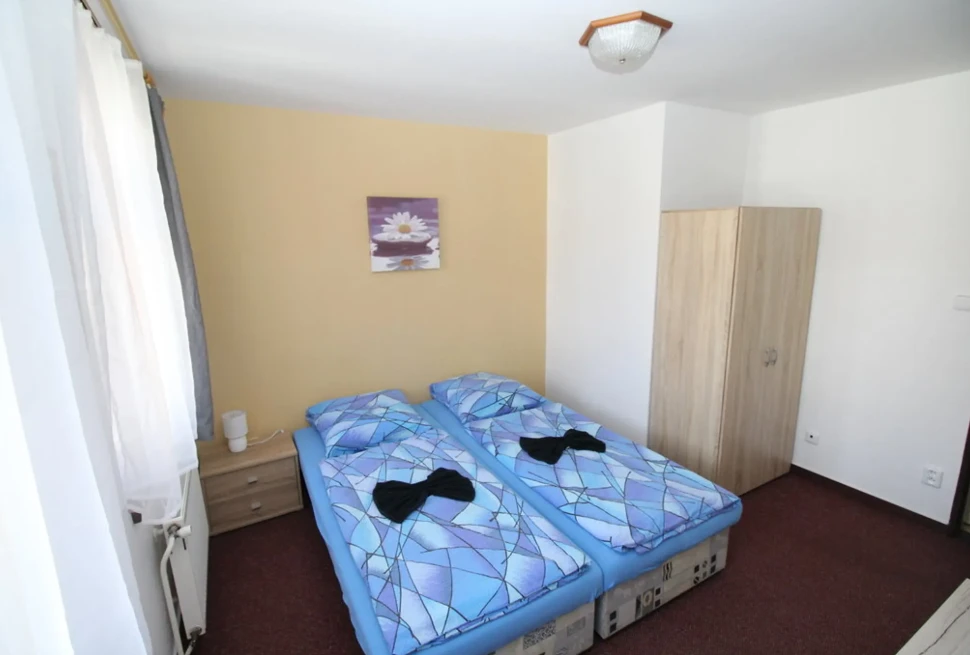 - Dvoulůžkové pokoje (č. 7, 10): 1 000 Kč/pokoj/noc (min. 1 osoba, 1 noc)