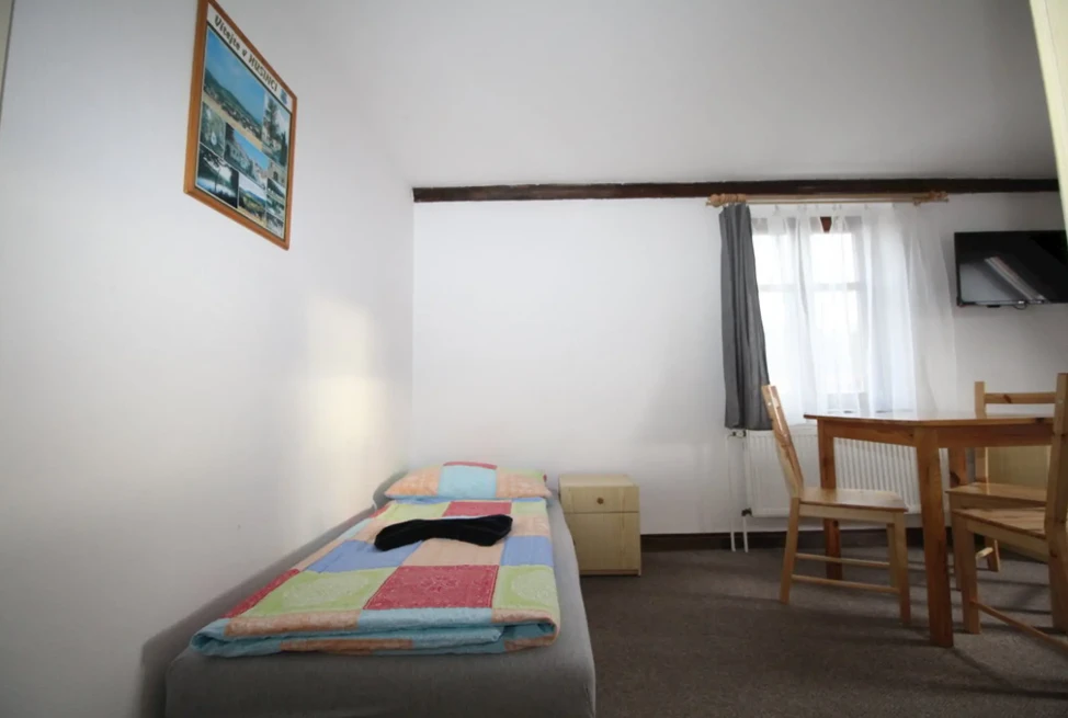 - Jednolůžkový pokoj: 500 Kč/osoba/noc (min. 1 osoba, 1 noc)