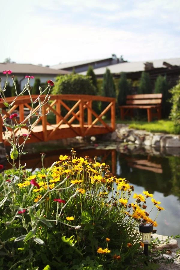 K ubytování patří velká zahrada s jezírkem. Ke každodennímu vyžití je zde pergola s grilem, pingpongový stůl a děti jistě ocení dětské hřiště s domečkem, trampolínou, houpačkou a skluzavkou. V teplých dnech se schladíte ve venkovním bazénku.