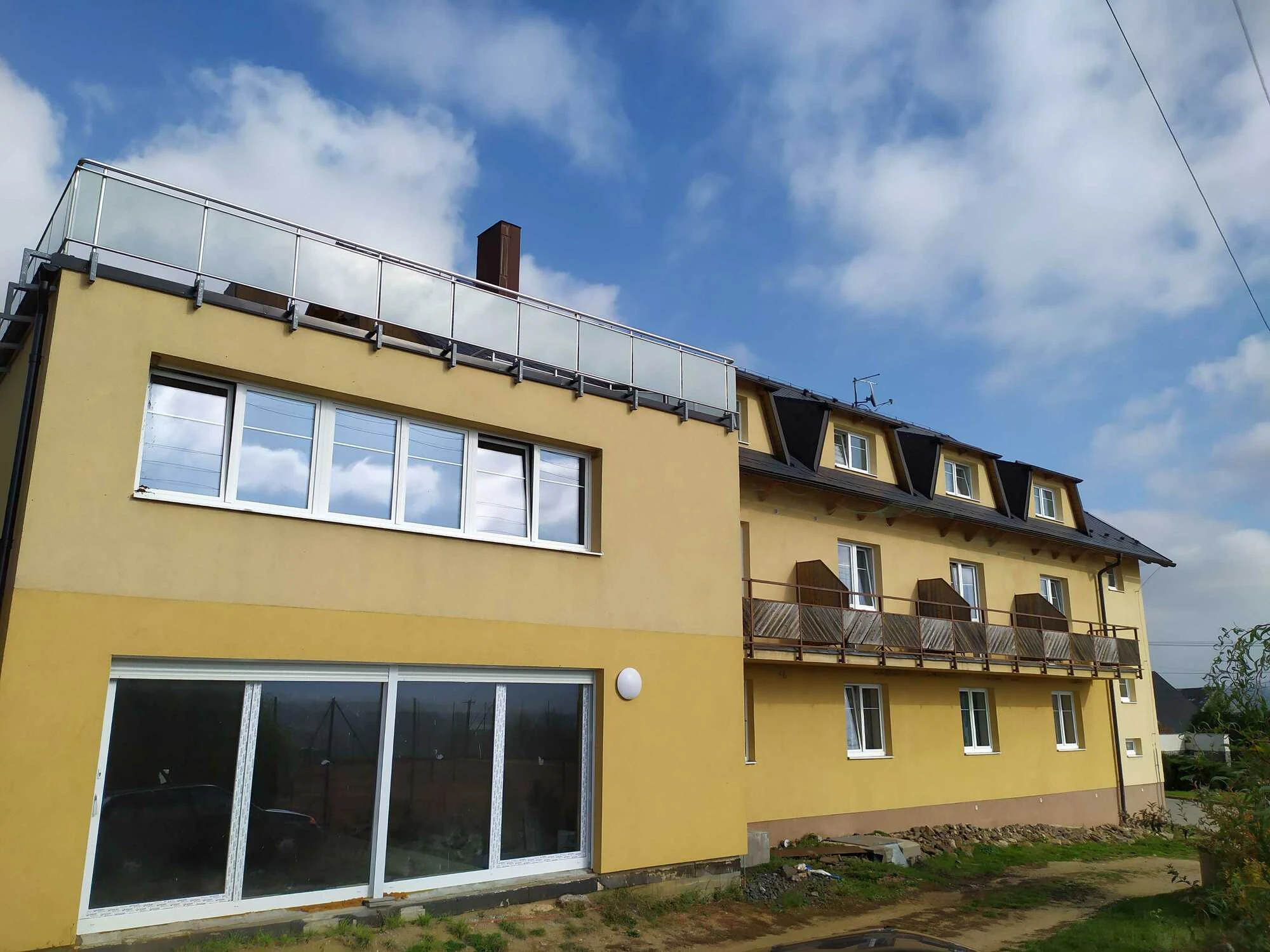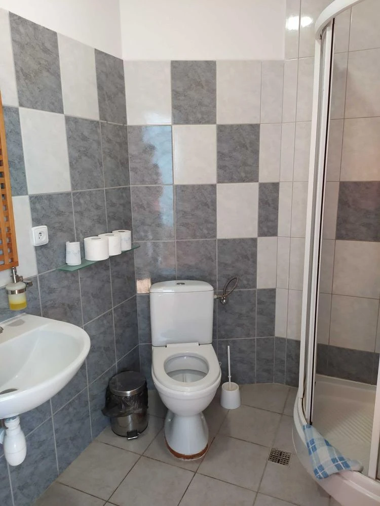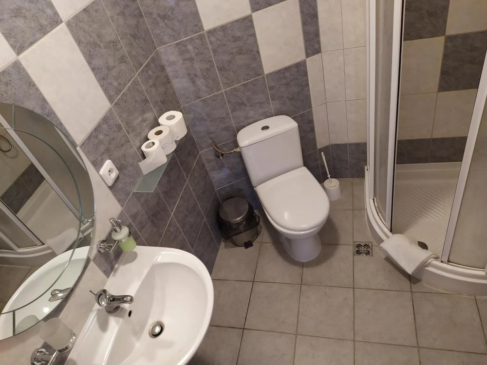- 4 dvoulůžkové pokoje s balkonem (všechny s manželskou postelí, televizí, koupelnou se sprchovým koutem a toaletou)