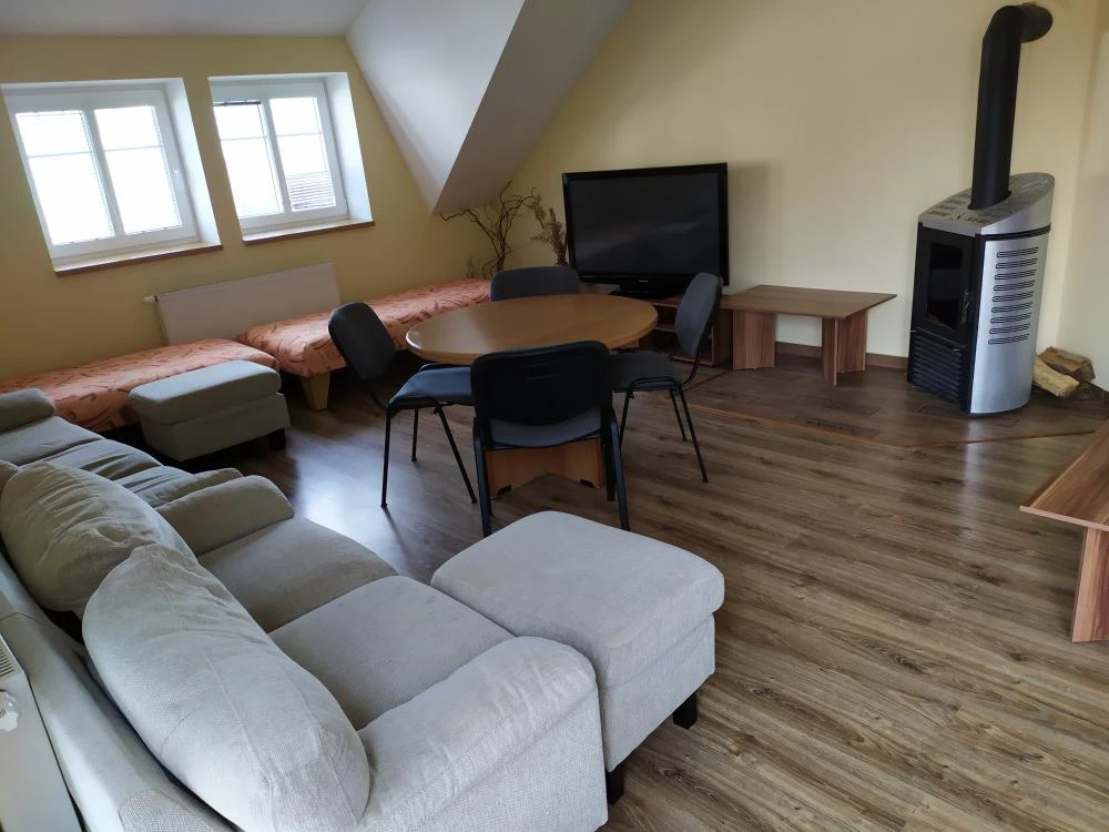 - 1 prostorný tříložnicový apartmán s kuchyňským koutem, obývací místností s krbem, velkou koupelnou a balkonem