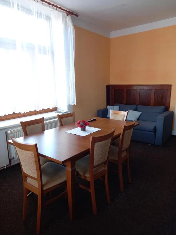 V penzionu je k dispozici prostorný apartmán s kapacitou až 8 osob, který je celoročně dostupný. Nabízí 4 ložnice – dvě s manželskou postelí a dvě ložnice s oddělenými 2 lůžky, což poskytuje dostatek pohodlí pro rodiny i skupiny přátel. Společenská místnost je vybavena televizí, gaučem, jídelním sezením a společenskými hrami. Kuchyně obsahuje elektrický sporák, troubu, lednici, mrazák, rychlovarnou konvici, kávovar a jídelní sezení. Koupelna je po rekonstrukci, disponuje sprchovým koutem,umyvadlem a lavicí, toaleta je samostatná.
