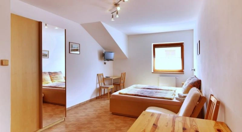 Penzion nabízí dvoulůžkové pokoje a apartmány.