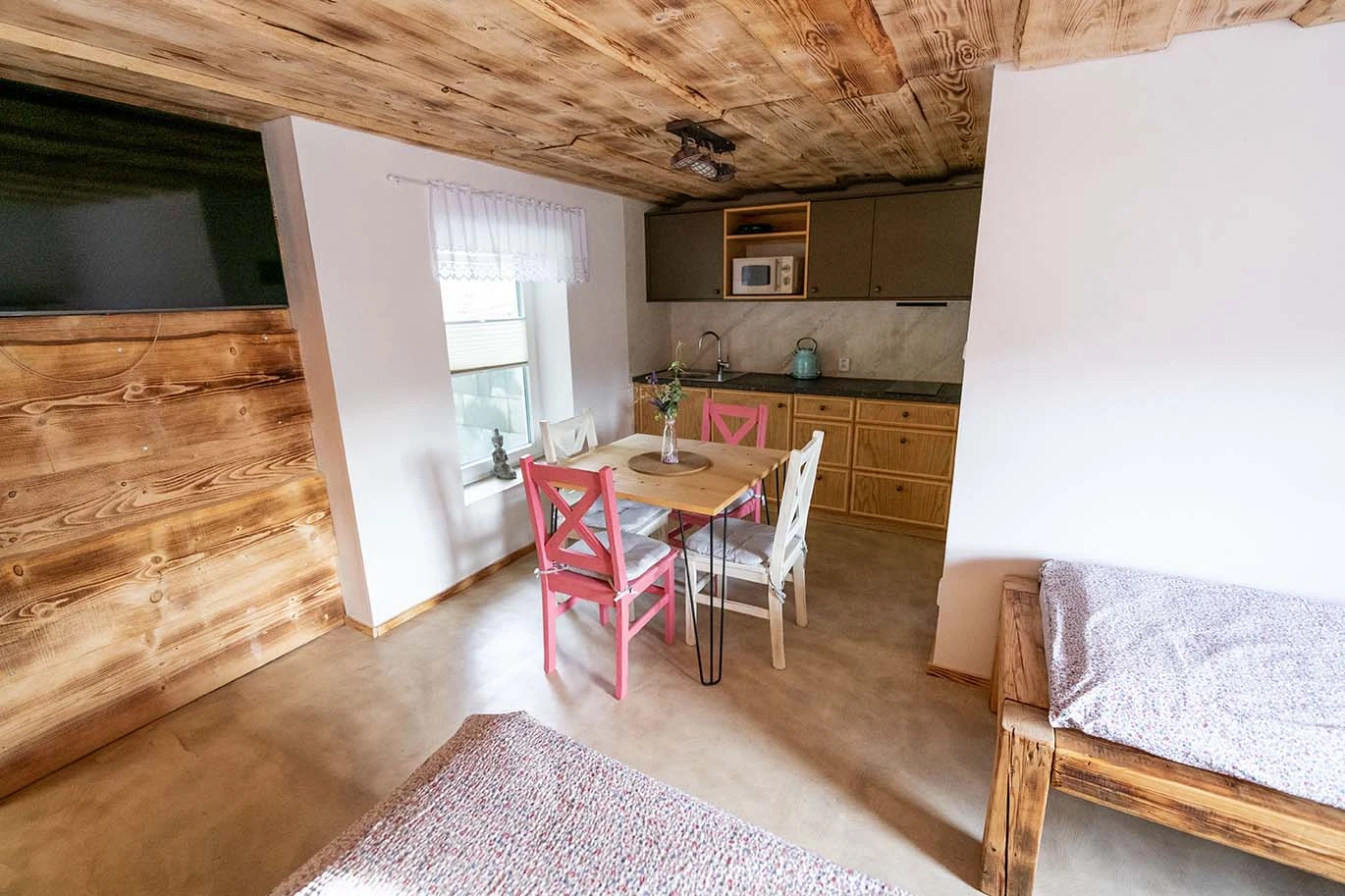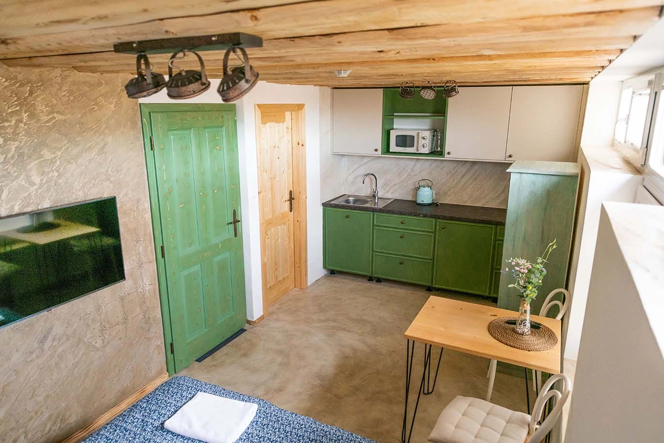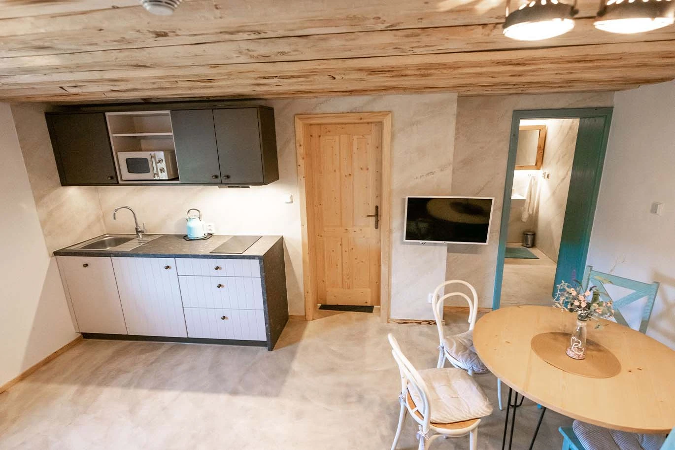 Pokoj Jan: Apartmán s kuchyňkou (1 manželská postel), vybavená kuchyňka, koupelna s čistými ručníky, klimatizace.