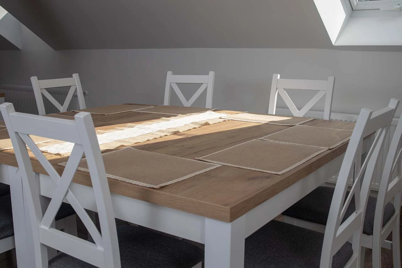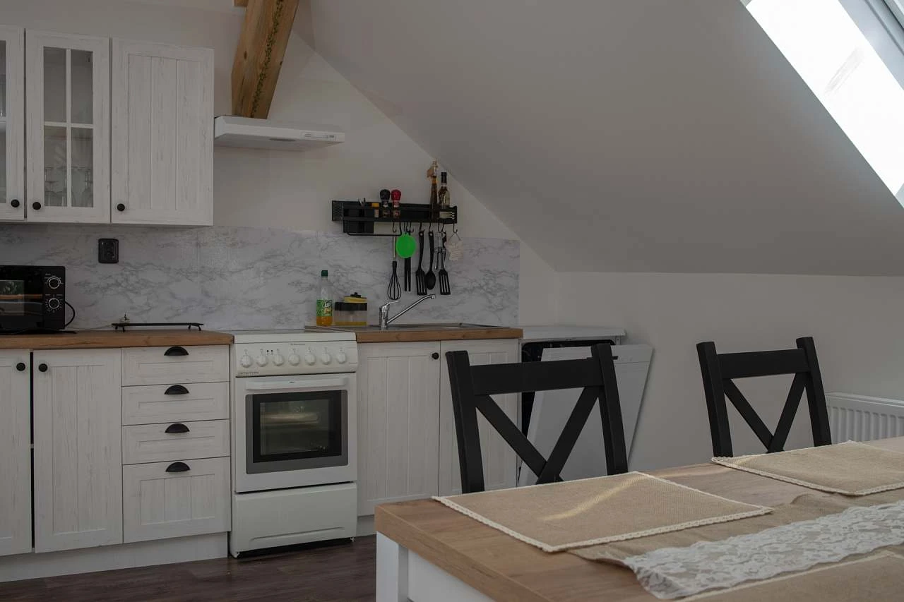 Apartmán je umístěn v samostatné části objektu včetně oddělené části zahrady. kolny, parkování, venkovní kuchyně s posezením a vjezdu. V Apartmánu jsou tři ložnice, plně vybavená kuchyně a velká společenská místnost.