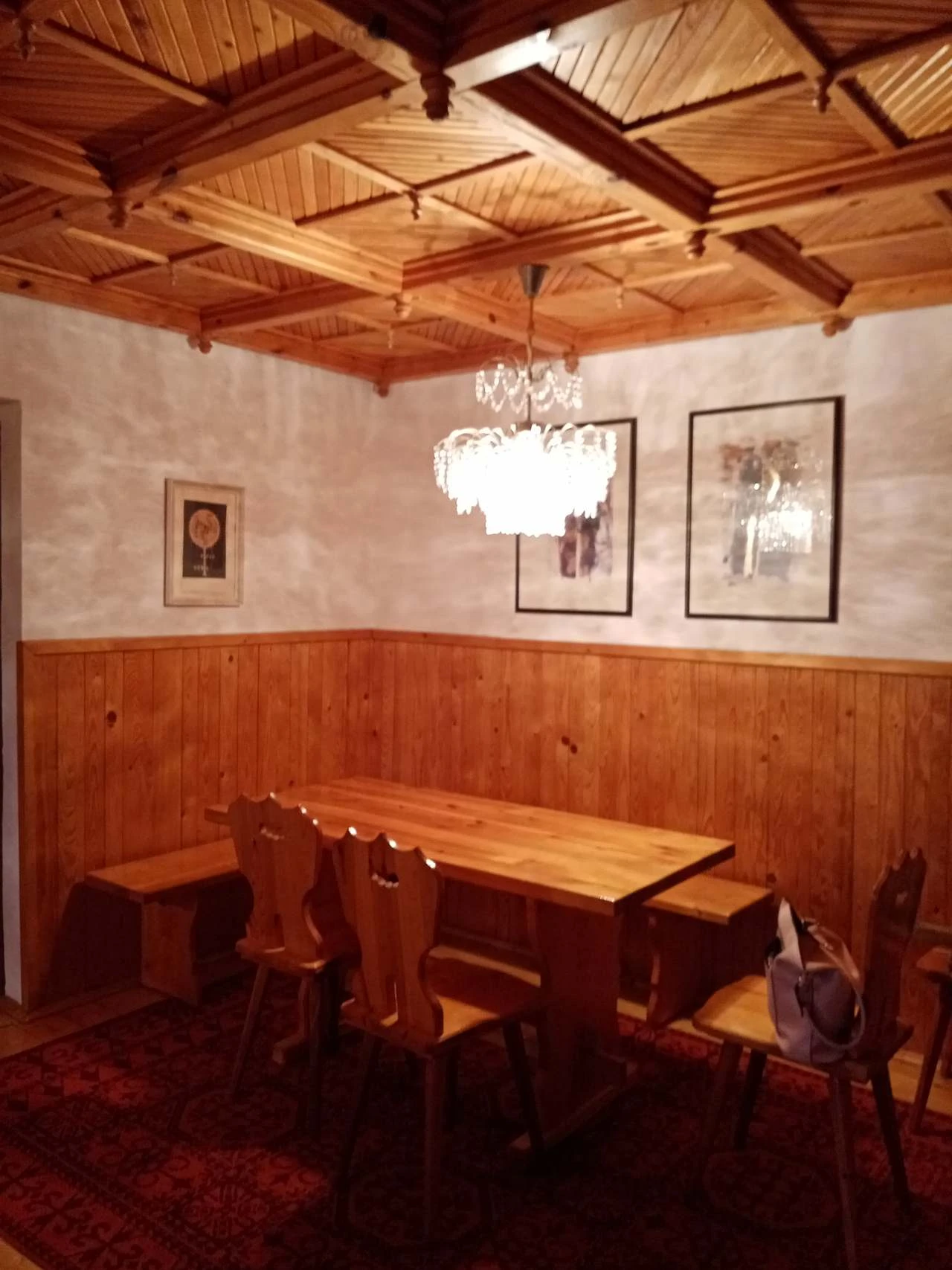 Obývací Pokoj: Pohodlný obývací pokoj je vybaven pohovkou, jídelním koutem se stolem, židlemi a lavicí, krbem a kamínky na dřevo. Nechybí televize, hifi věž a WiFi připojení pro vaše pohodlí.