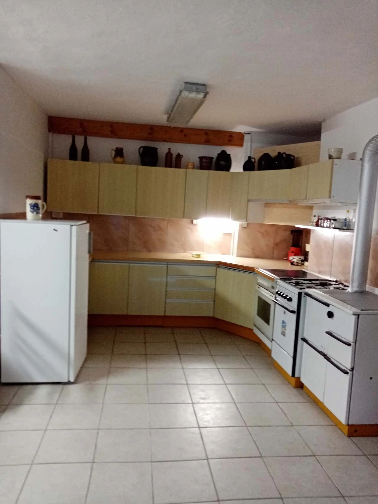 - Plně vybavená kuchyňská linka zahrnuje veškeré potřebné nádobí a spotřebiče: sklokeramický sporák, horkovzdušná trouba, lednice, varná konvice, překapávač na kávu, mixer, mikrovlnná trouba, plynový sporák a sporák na dřevo. Kuchyně disponuje také jídelním stolem se židlemi a má přístup na prostorný balkón.