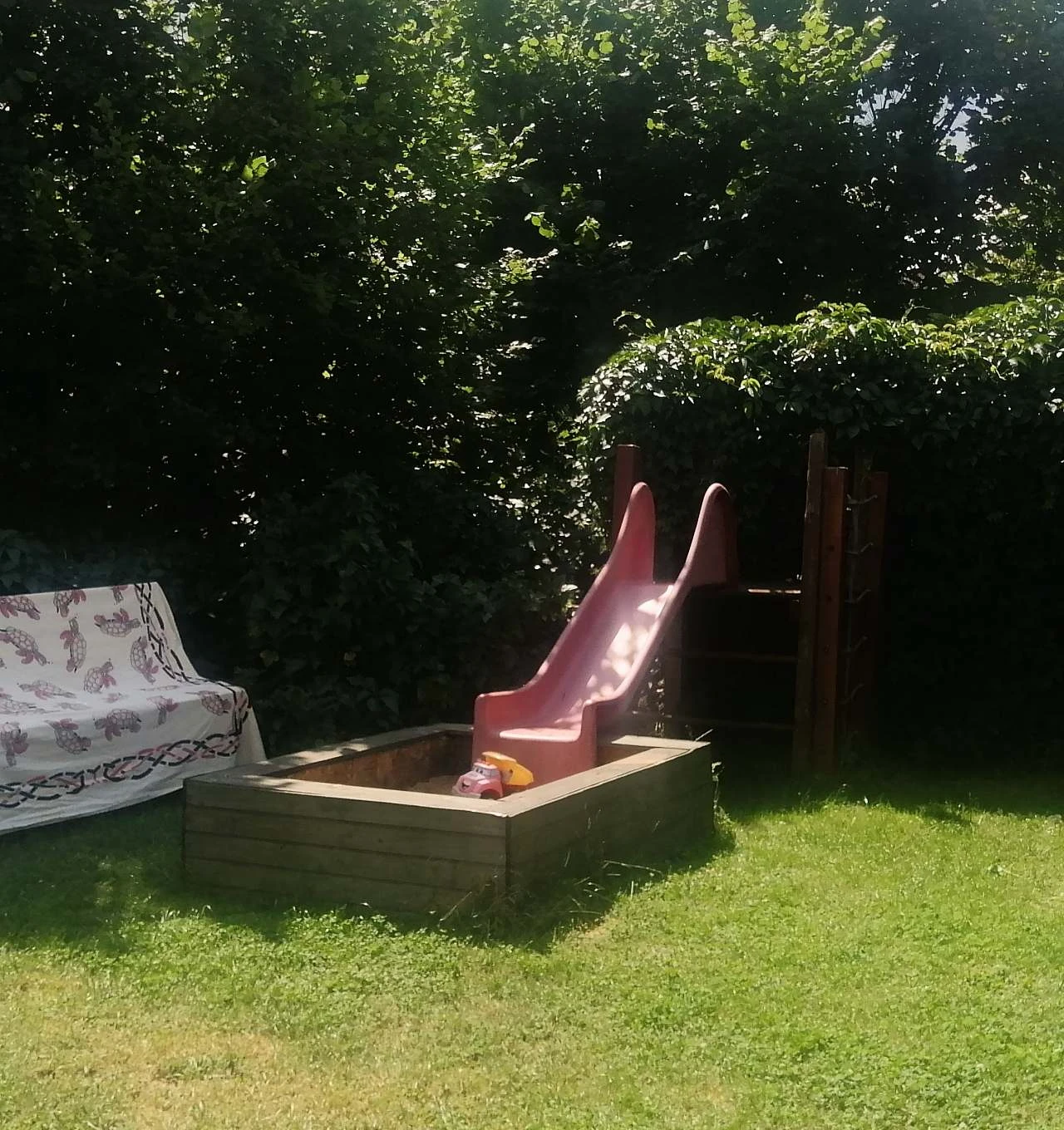 Venkovní prostory chalupy nabízejí nejen možnost grilování pod zastřešenou pergolou, ale i zábavu pro děti v podobě malého bazénu a pískoviště s klouzačkou. Okolní krajina je ideální pro cykloturistiku, pěší výlety a objevování historických památek, jako je nedaleký zámek Zákupy či hrad Sloup.
