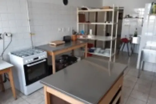 Hosté mají k dispozici plně vybavenou kuchyň, která umožňuje pohodlnou přípravu jídel, a prostornou jídelnu, kde si mohou společně vychutnat své pokrmy.