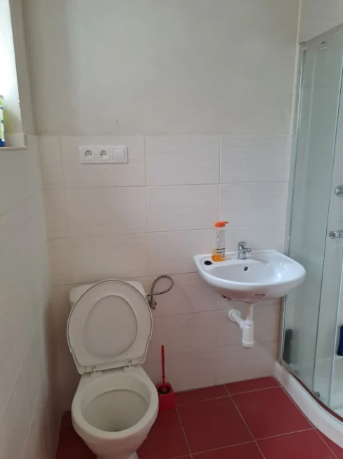 Sdílená koupelna je vybavena sprchovým koutem, vanou a pračkou. Samostatná toaleta je na chodbě. Hosté mají k dispozici společný kuchyňský kout se základními spotřebiči: keramická varná deska, elektrický sporák, mikrovlnná trouba, lednice, rychlovarná konvice a jídelní posezení.