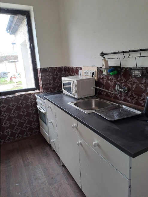 - Kuchyňský kout (keramická varná deska, elektrický sporák, mikrovlnná trouba, lednice, rychlovarná konvice)