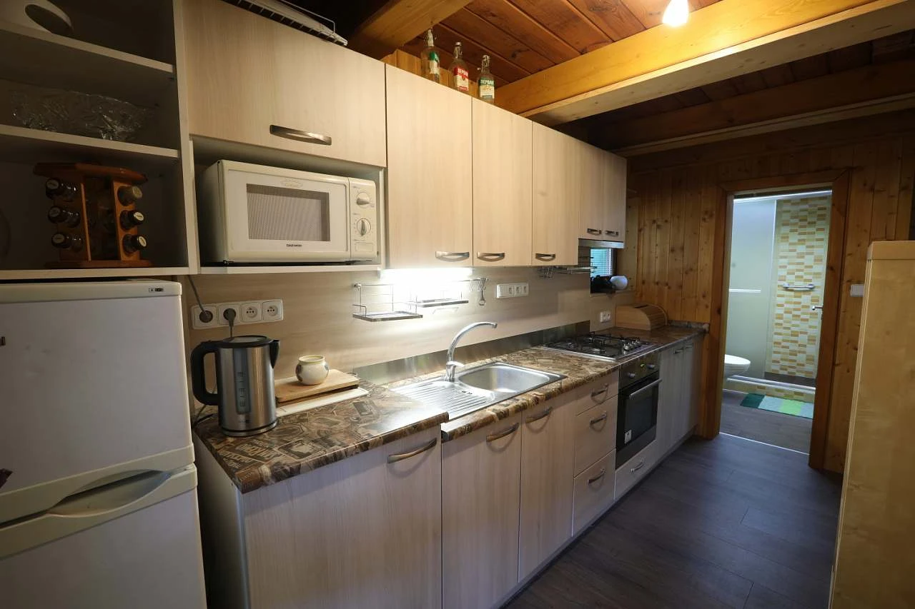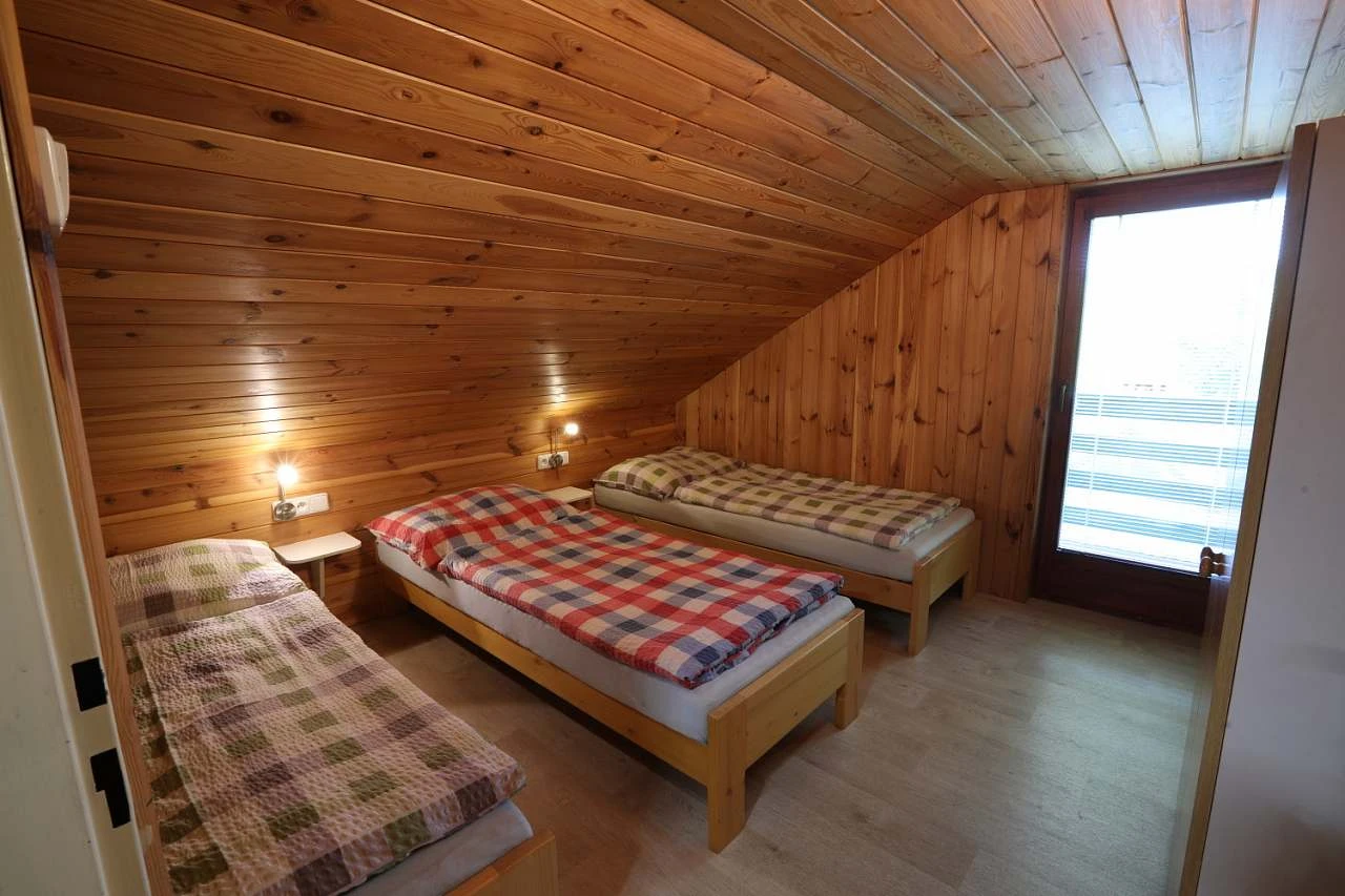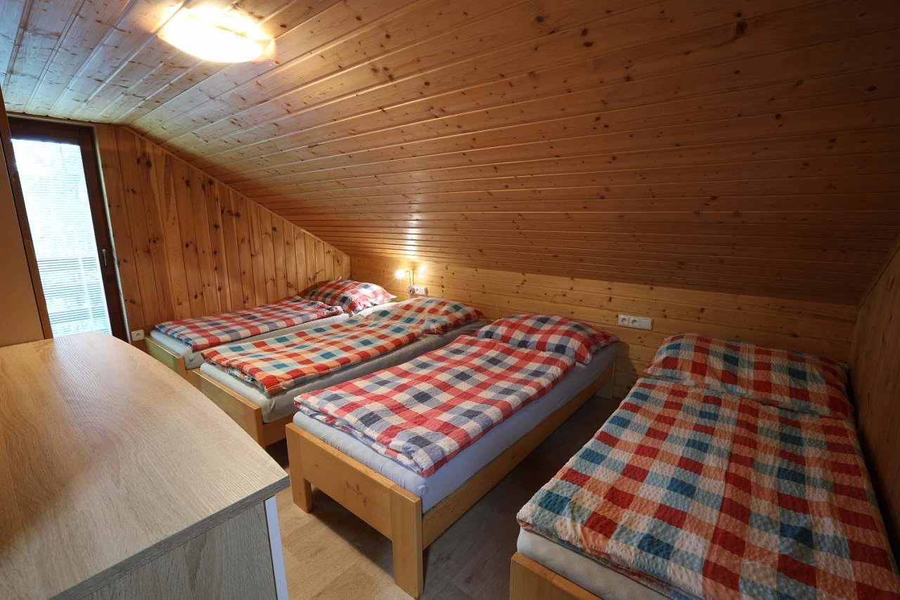 V nejvyšším patře, podkroví, jsou tři samostatné ložnice s kapacitou 2, 4 a 3 lůžka. Chata je vybavena internetovým a wifi připojením, a také velkou televizí.