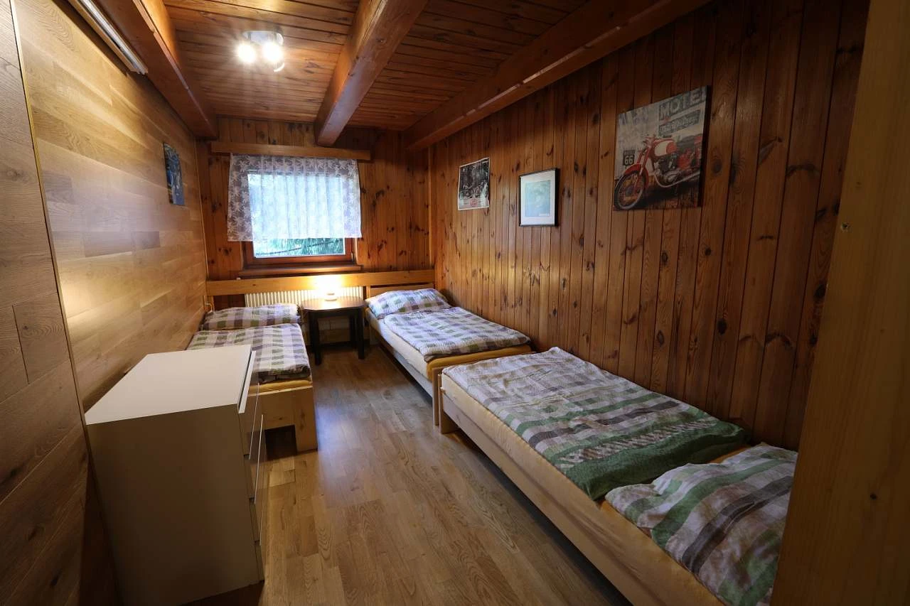 Chata k pronájmu poskytuje ubytování pro 14 osob ve 4 ložnicích.