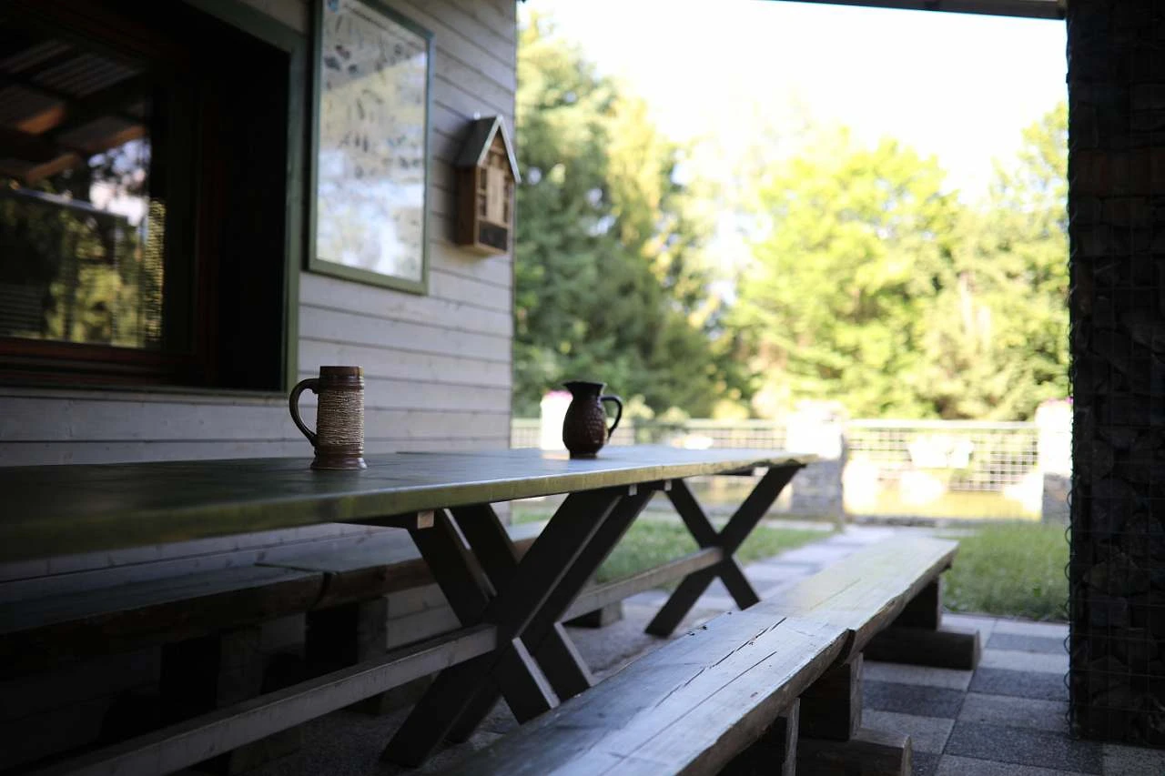 Areál chaty nabízí příjemné prostředí s rybníčkem a prostorným zastřešeným venkovním posezením. Zde si můžete občas společné chvíle s rodinou s přáteli, relaxovat a užívat si krásnou přírodu okolí.