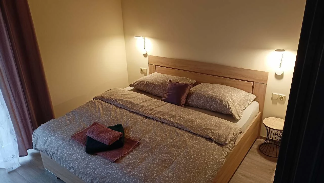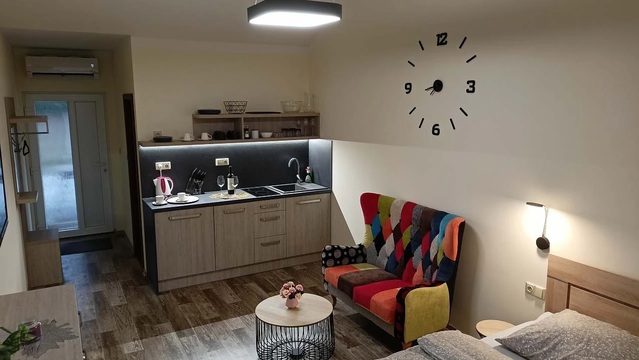 - Popis: Apartmán je vybaven kuchyňským koutem, koupelnou a samostatnou ložnicí.