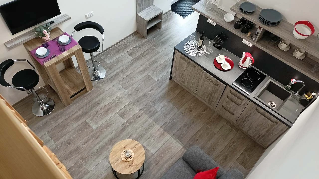 - Popis: Apartmán je vybaven kuchyňským koutem a koupelnou.