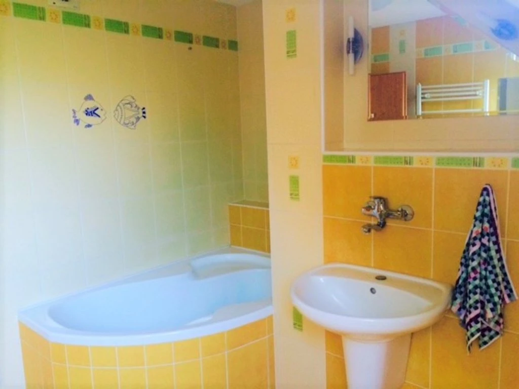 K dispozici jsou dvě koupelny bez WC - jedna je vybavena umyvadlem, pračkou, vanou, fénem a sušákem na prádlo, druhá pak sprchou a umyvadlem. Kromě toho jsou v domě dvě samostatné toalety.