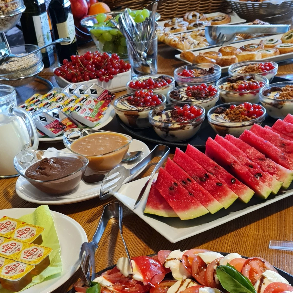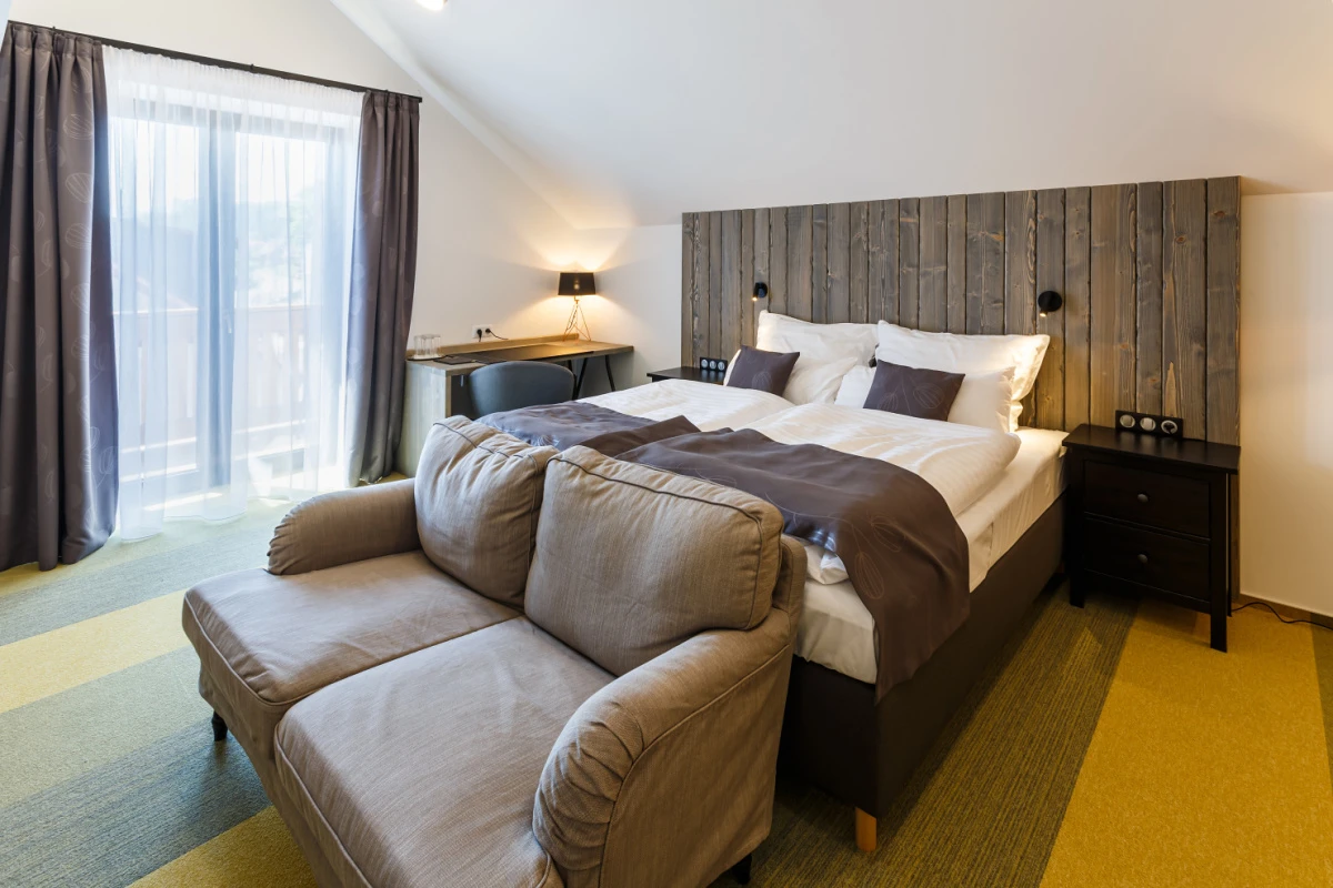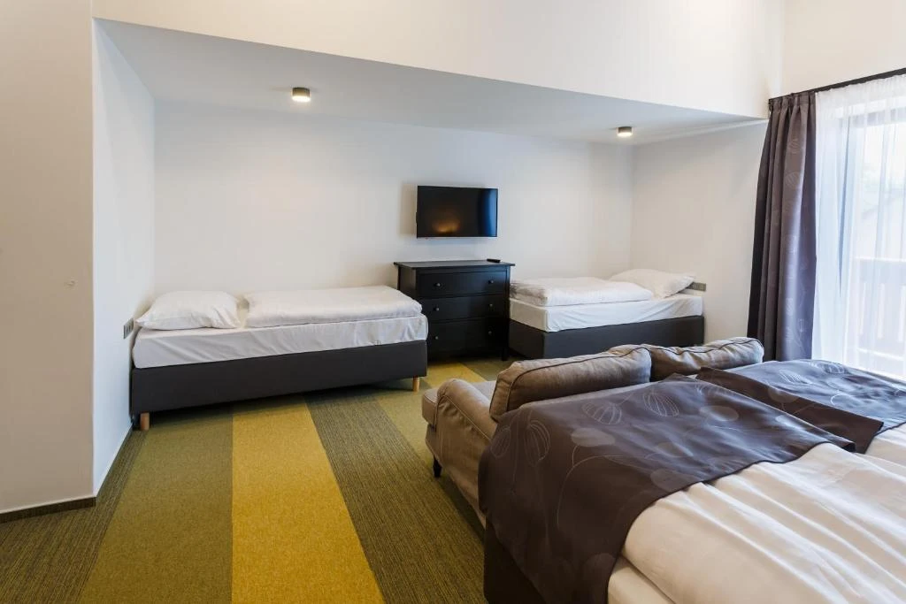 - Pohodlné postele (dvoulůžkové, třílůžkové, čtyřlůžkové pokoje a apartmá).