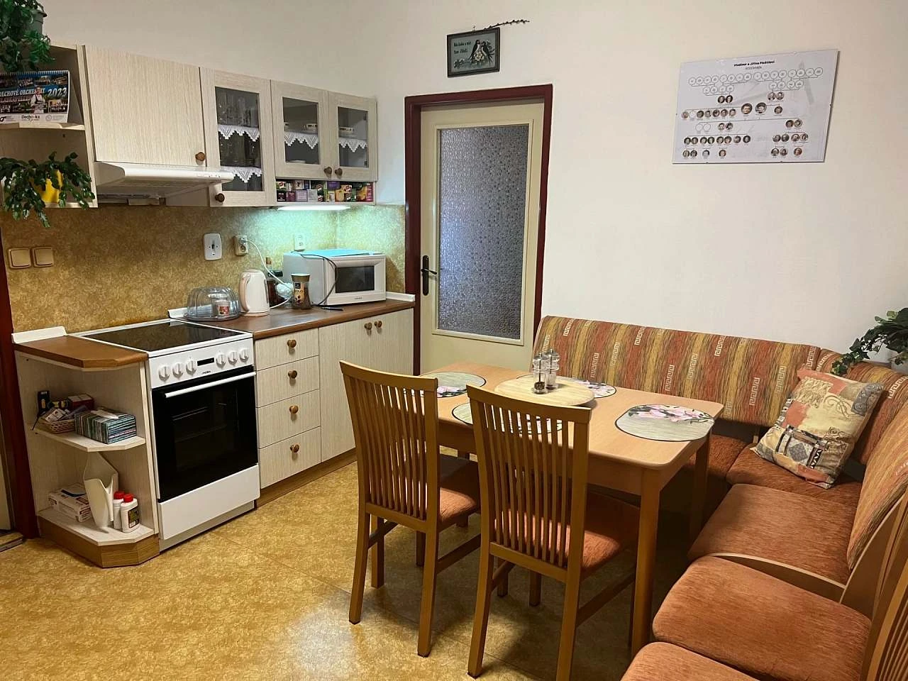 • Plně vybavená kuchyň (elektrický sporák, trouba, mikrovlnná trouba, rychlovarná konvice, lednice s mrazákem)