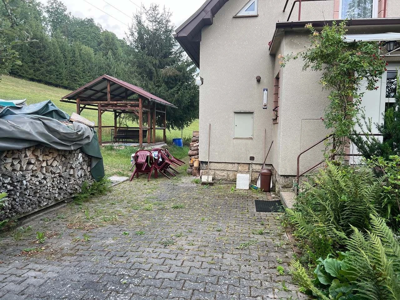 Velkou výhodou je oplocená zahrada s altánem, ohništěm a venkovním posezením, ideální pro letní grilování nebo odpočinek v přírodě. Parkování je zajištěno přímo u domu v uzavřeném dvoře.