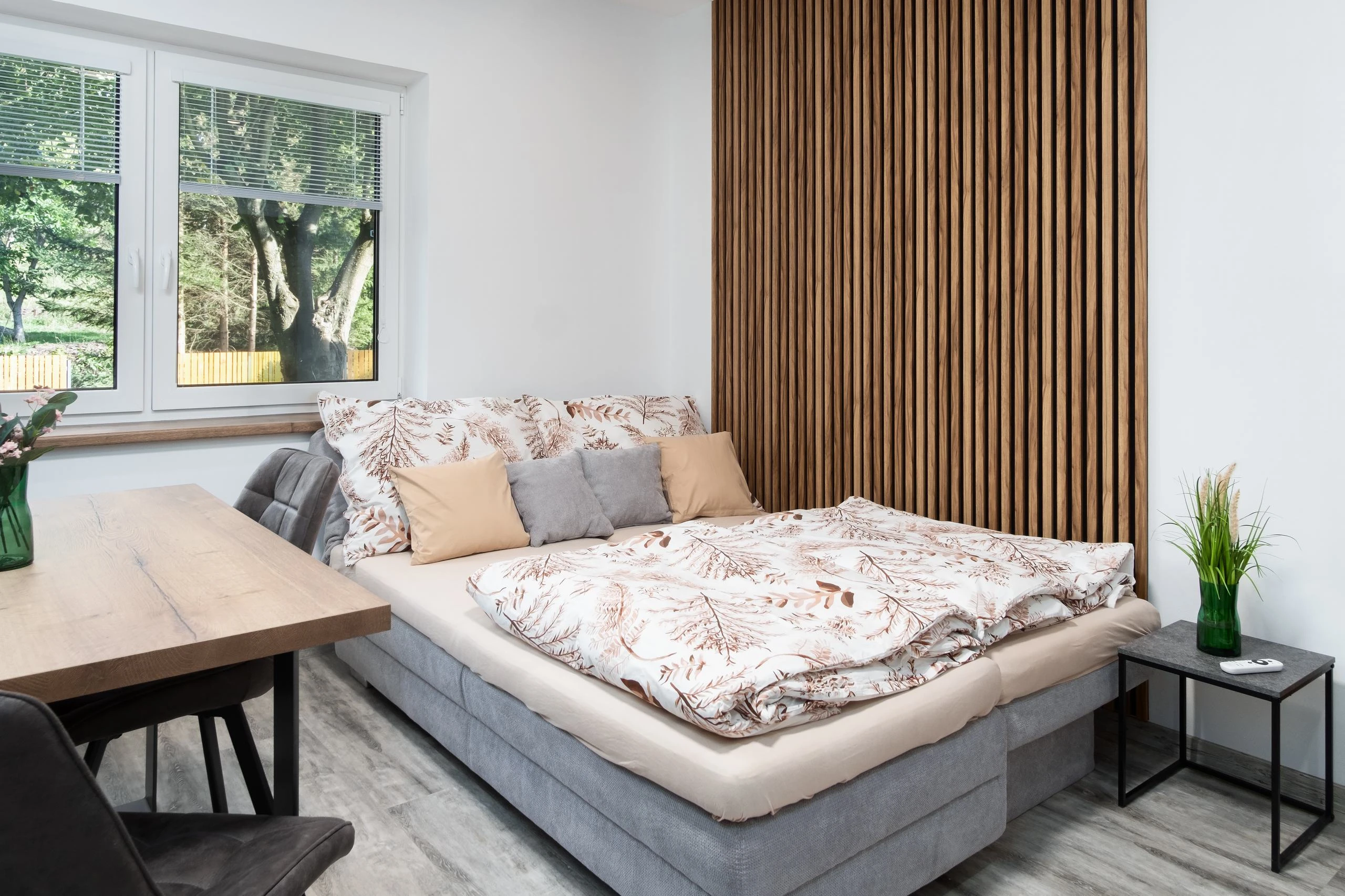 Apartmán 2 je také situovaný v přízemí a má studiové uspořádání. Je vhodný pro 2 osoby. Nabízí kompaktní řešení s kuchyňským koutem, koupelnou a manželskou postelí. Tento apartmán nemá přistýlku.