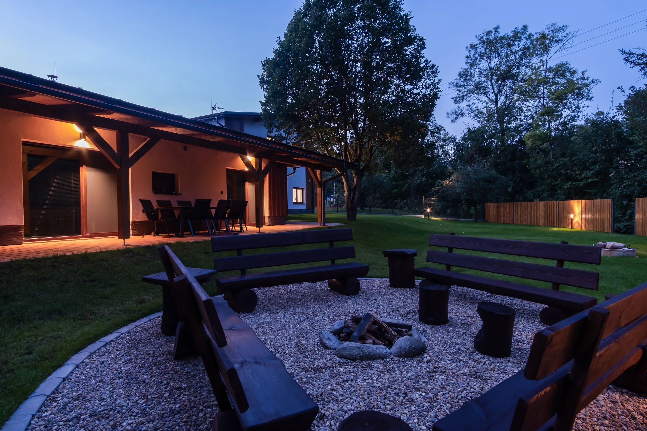 Součástí areálu je společenská místnost s krbovými kamny, šipkami a stolním fotbálkem, finská sauna, terasa, ohniště, dětské hřiště a uzamykatelná místnost s vysoušeči bot. Každý apartmán má vlastní kuchyň a koupelnu. Parkování je zajištěno přímo u objektu a přímo před ubytováním se nachází autobusová zastávka. V okolí najdete možnosti pro turistiku, cyklistiku, zimní sporty i relaxaci.
