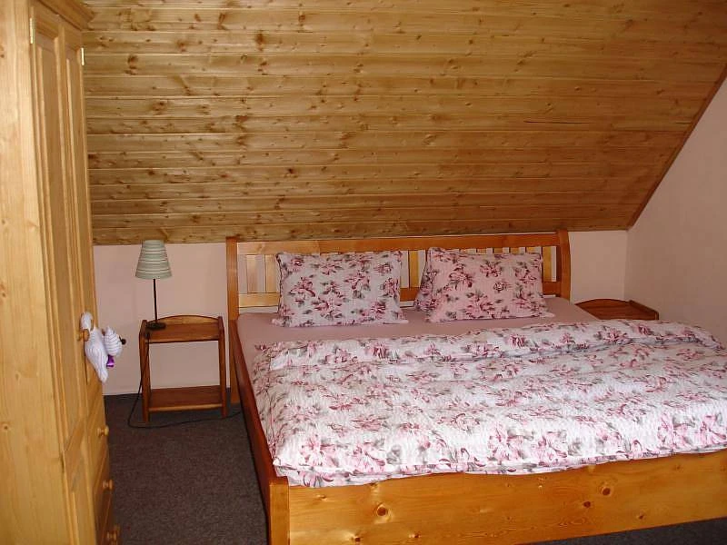 V patře jsou 2 třílůžkové ložnice. Sociální zařízení: V přízemí koupelna se sprchovým koutem a WC.