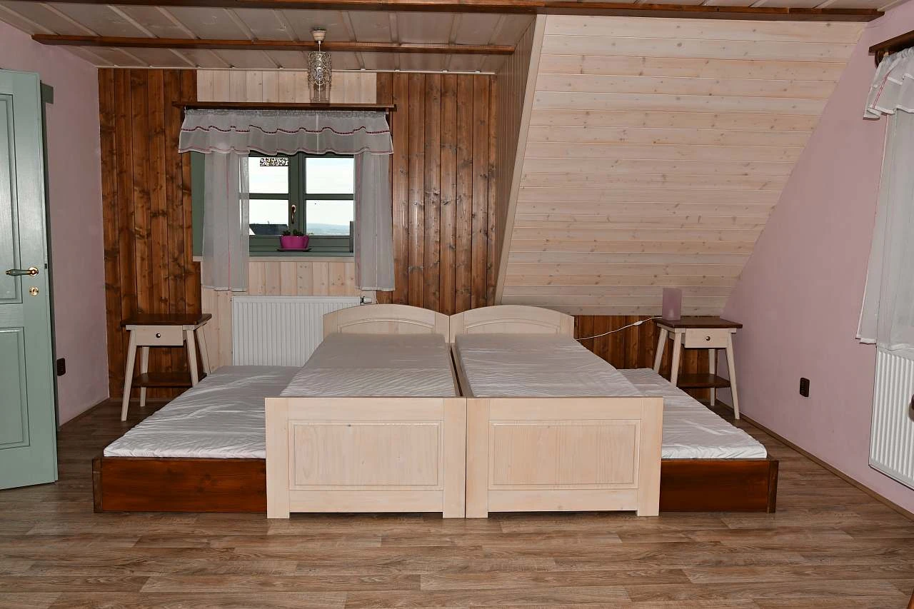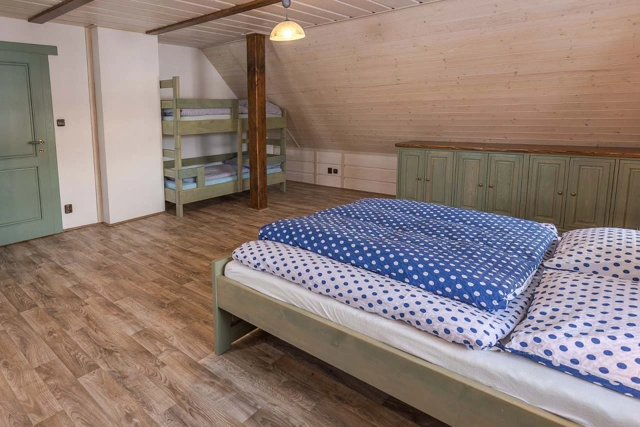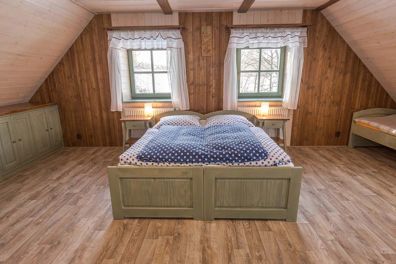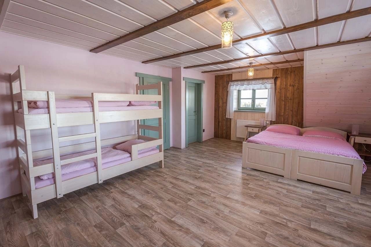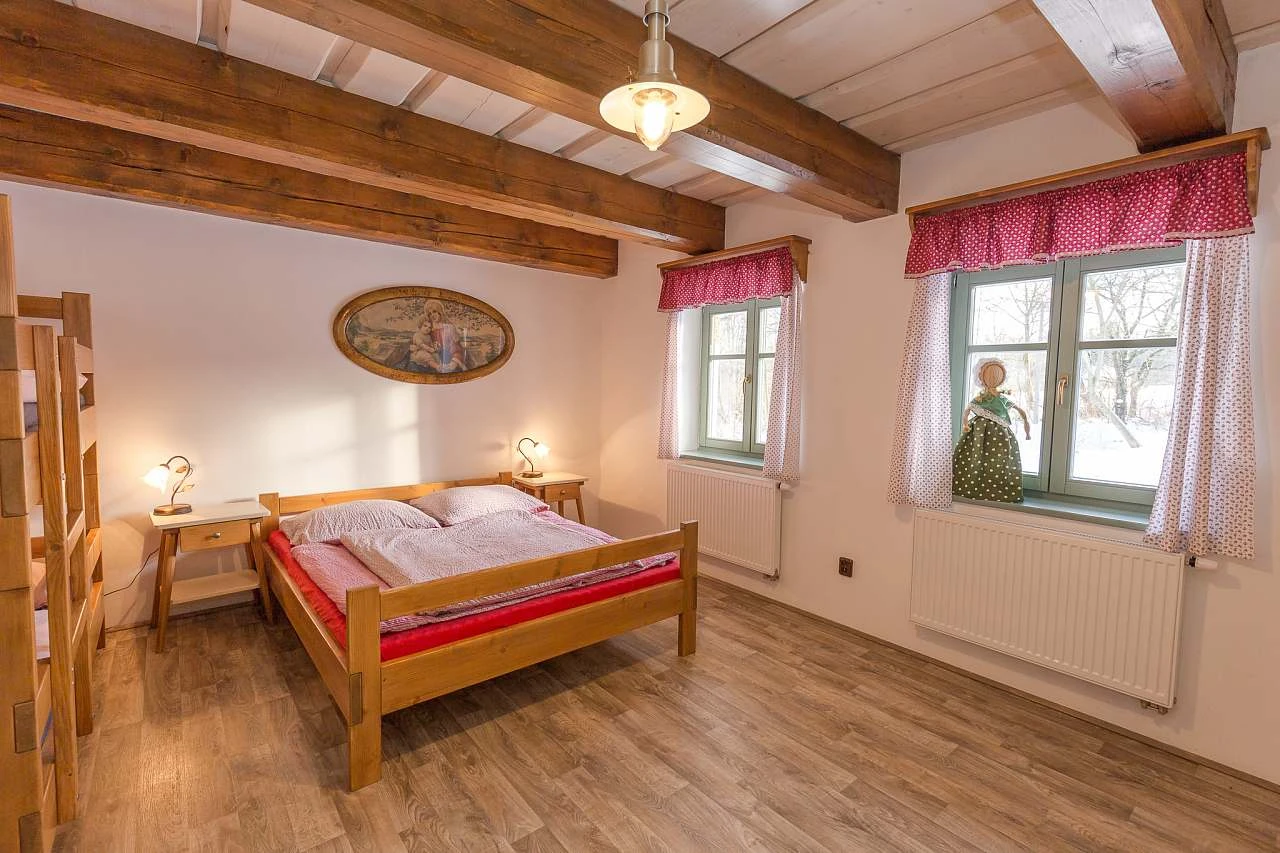 Roubenka poskytuje komfortní ubytování až pro 18 osob ve třech pokojích. V přízemí se nachází pokoj s manželskou postelí a patrovou postelí. V podkroví jsou dva identické pokoje, každý se sedmi lůžky – dvoulůžkem, patrovou postelí, samostatným lůžkem a dvěma výsuvnými lůžky. K dispozici je také dětská postýlka a židlička.