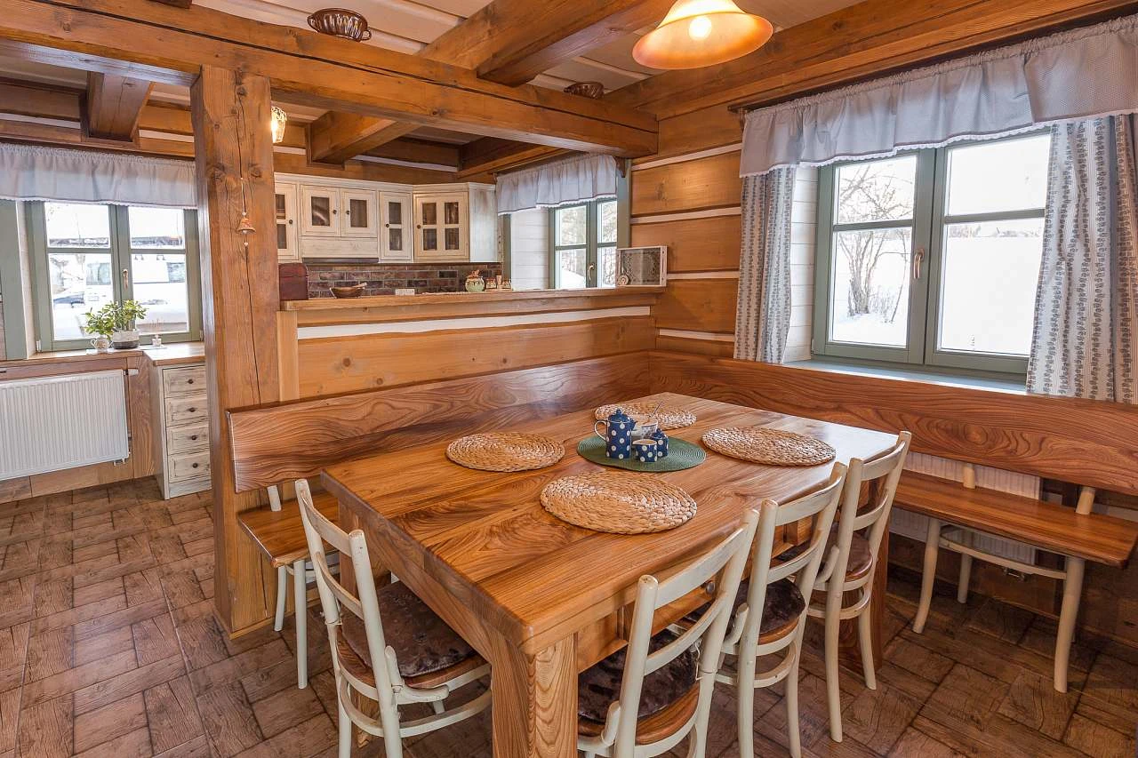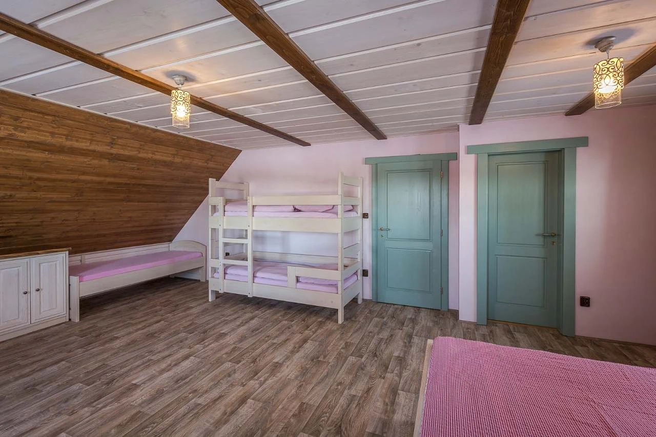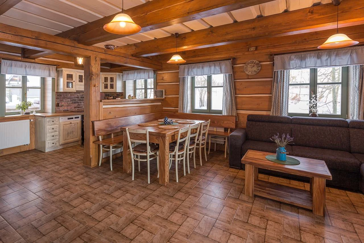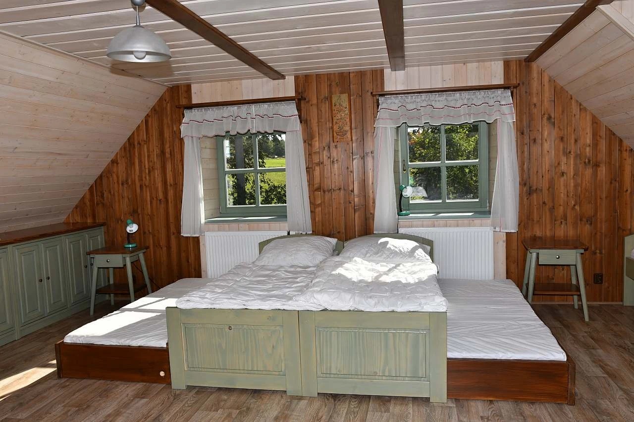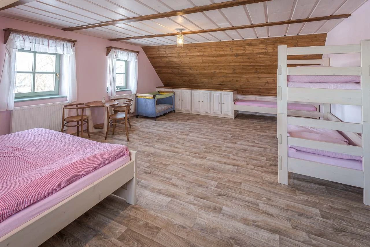 Roubenka poskytuje komfortní ubytování až pro 18 osob ve třech pokojích. V přízemí se nachází pokoj s manželskou postelí a patrovou postelí. V podkroví jsou dva identické pokoje, každý se sedmi lůžky – dvoulůžkem, patrovou postelí, samostatným lůžkem a dvěma výsuvnými lůžky. K dispozici je také dětská postýlka a židlička.