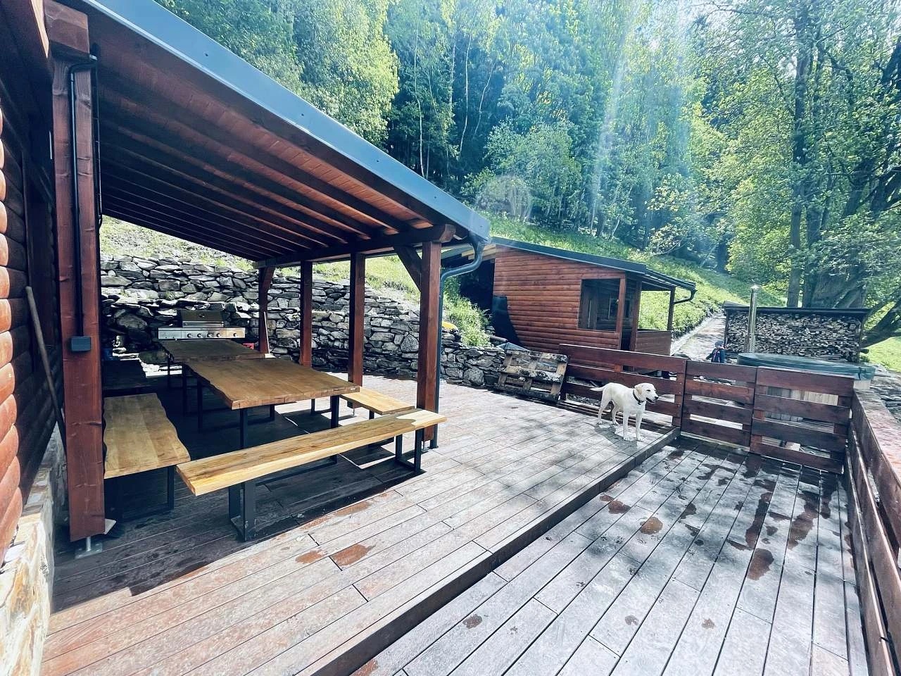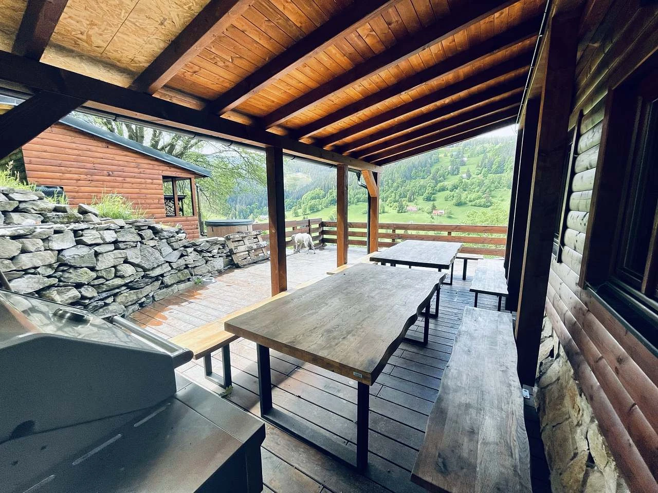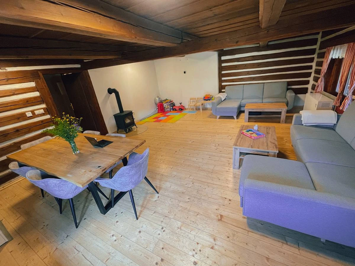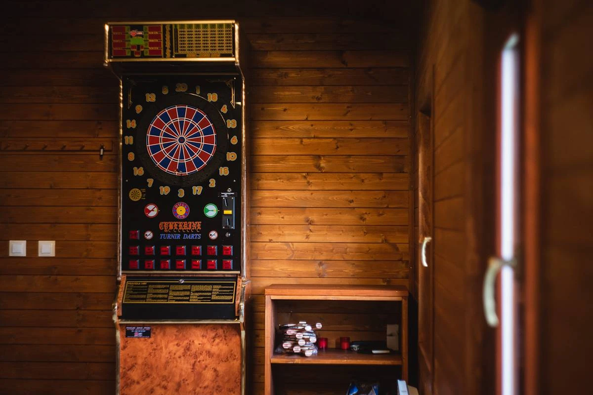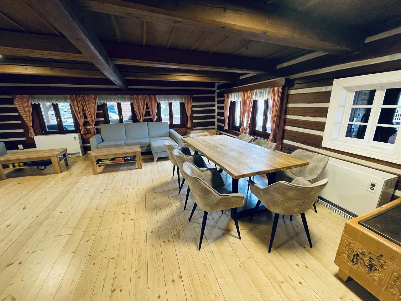 Roubenka poskytuje ubytování pro až 20 osob ve 7 ložnicích, což je ideální pro rodinu nebo skupinu přátel. V přízemí se nachází prostorná kuchyň s jídelnou, obývací pokoj a velká herna s různými zábavními aktivitami, jako jsou šipky a ping-pong. Venkovní prostory nabízejí terasu s grilem, saunu a koupací zařízení, což nabízí příjemné chvíle strávené venku.