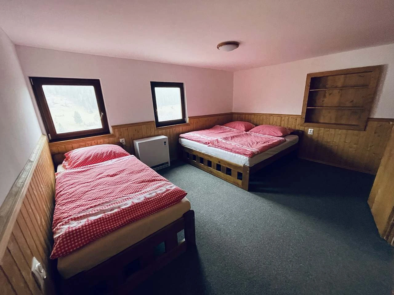 Roubenka má celkem 7 pokojů, které jsou v druhém nadzemním podlaží. Pohodlně se zde vejde celkem 20 lidí. Tři dvoulůžkové pokoje, dva pokoje pro 3 osoby, jeden pokoj pro 4 osoby a jeden pokoj pro 7 osob. Možno připravit i dětskou postýlku. Ložní prádlo je k dispozici. Možno připravit i dětskou postýlku.