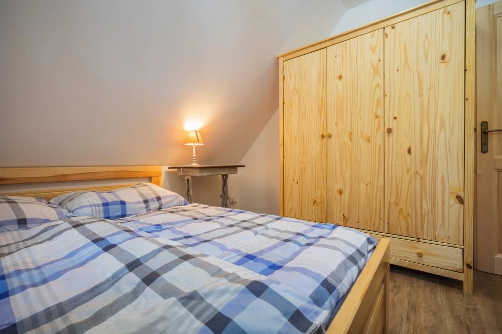 Malý apartmán je přizpůsoben pro menší skupiny nebo páry a jeho kapacita je až 4 osoby. Disponuje jednou ložnicí, kuchyňským koutem s praktickým vybavením a menší společenskou místností. Také zde je hostům k dispozici koupelna s toaletou. Tento apartmán poskytuje útulné a klidné prostředí pro kratší i delší pobyty.