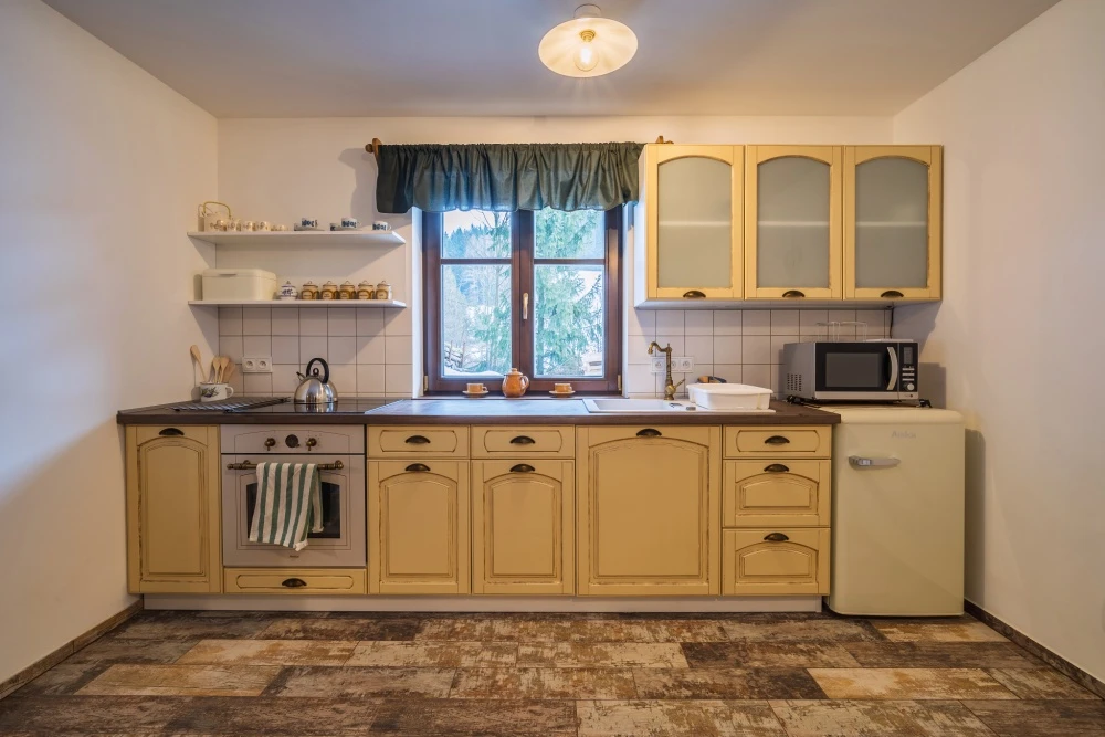 Roubenka Karlovice nabízí dva stylové apartmány – Velký a Malý – které splňují potřeby různě velkých skupin hostů. Ubytování je vhodné pro rodiny, páry i jednotlivce, kteří hledají klidné prostředí s přímým kontaktem s přírodou. Oba apartmány kombinují tradiční valašskou atmosféru s moderním vybavením, aby zajistily komfort během celého pobytu.