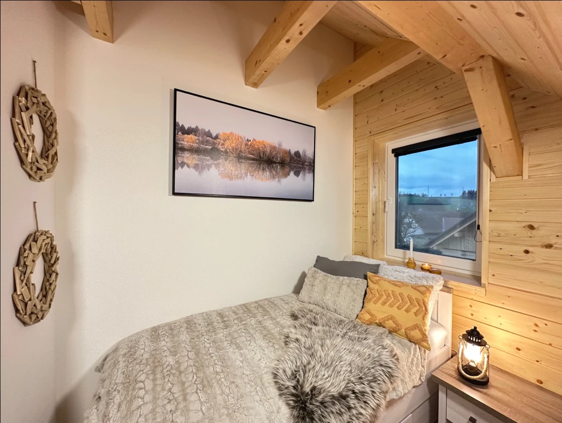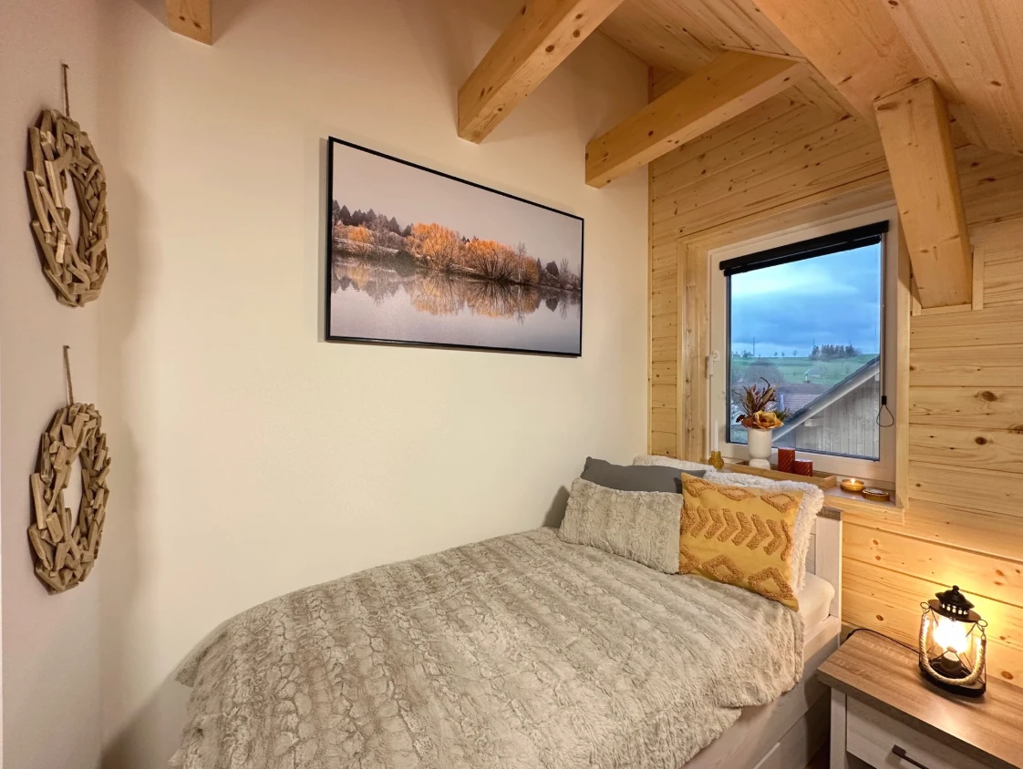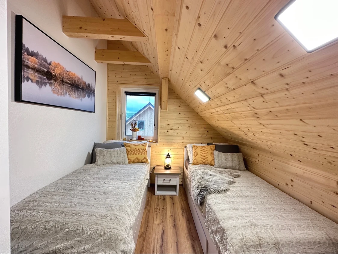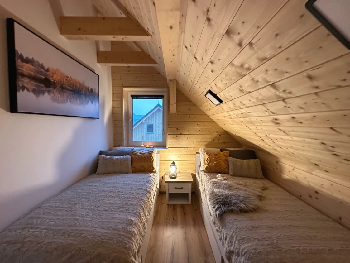 - 3. ložnice je vybavena 2 postelemi (90x200 cm), komodou, věšáky, nočním stolkem s lampičkou a stolem se židličkami.