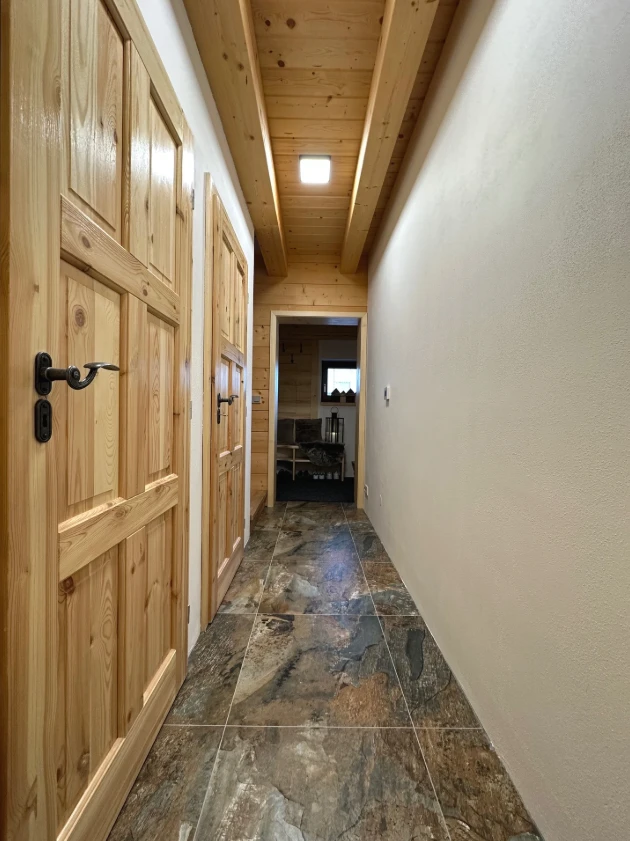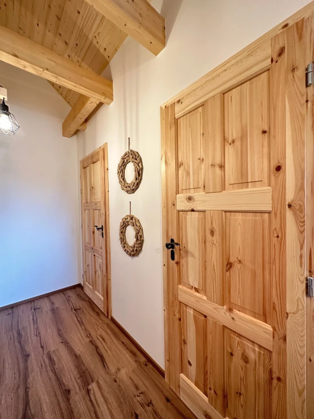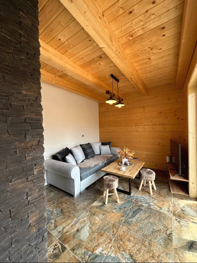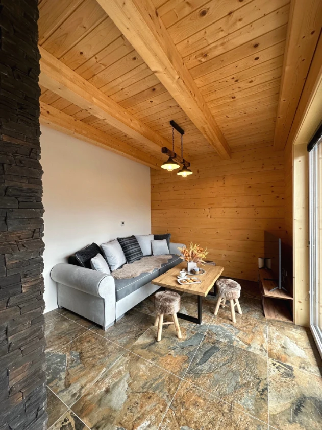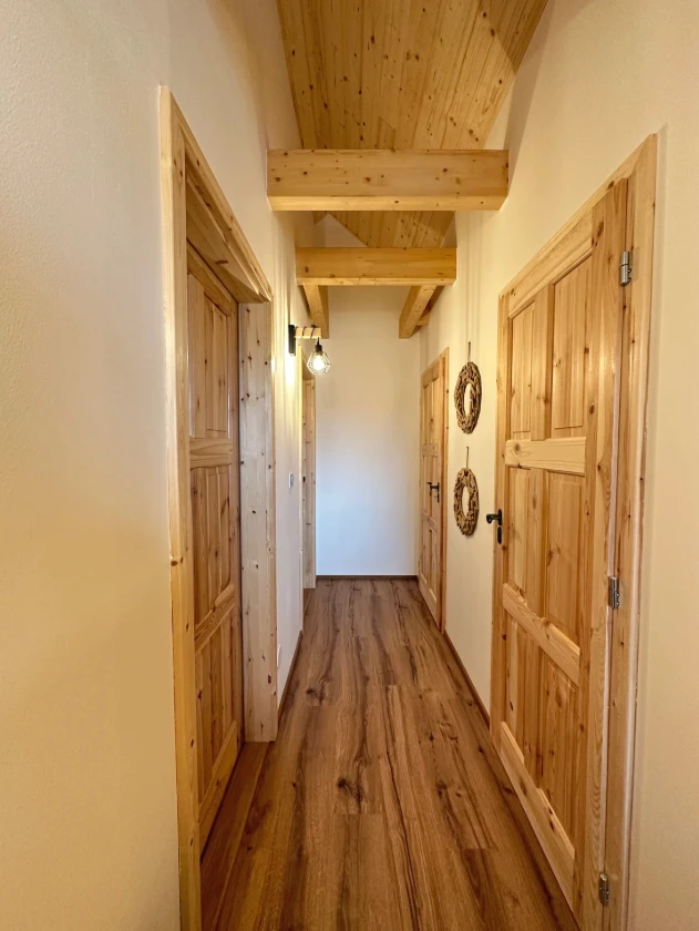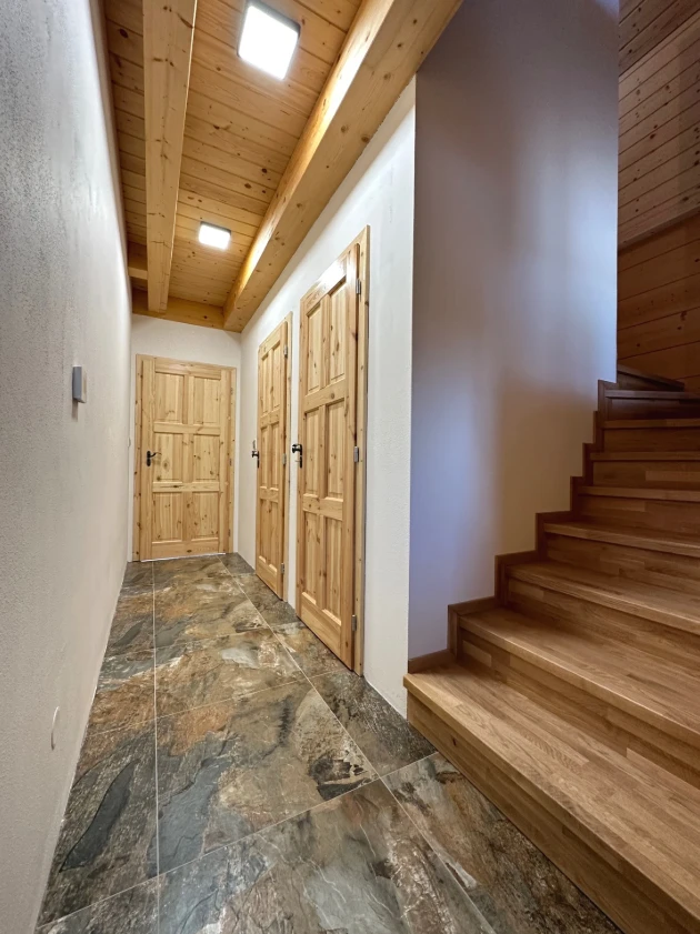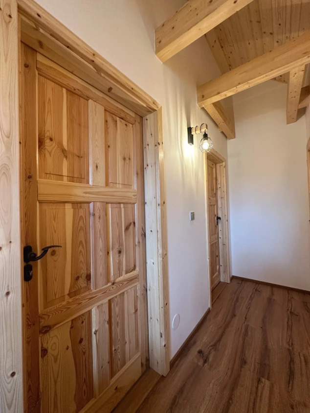 Při realizaci stavby jsme kladli důraz na použití tradičních materiálů, především dřeva a kamene, což zajišťuje příjemnou a útulnou atmosféru.