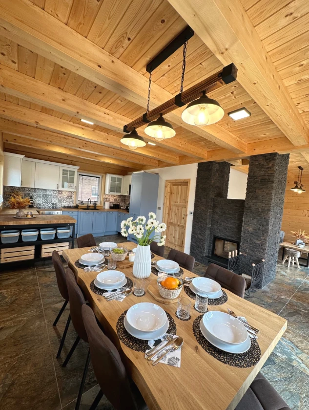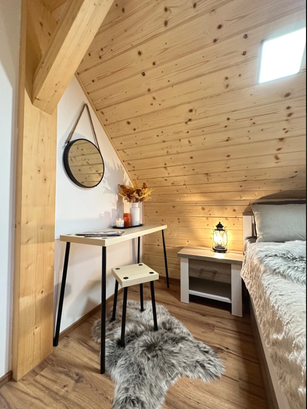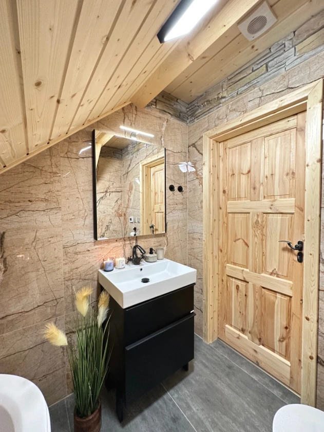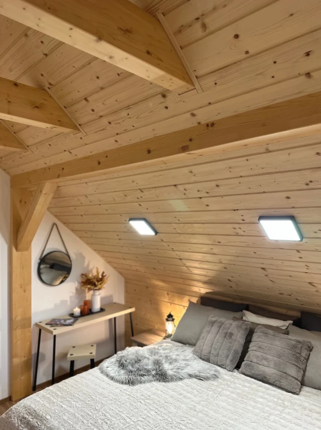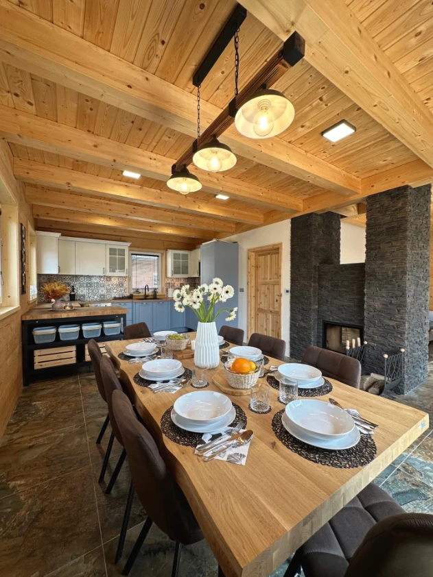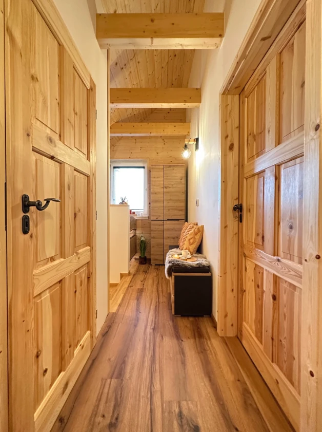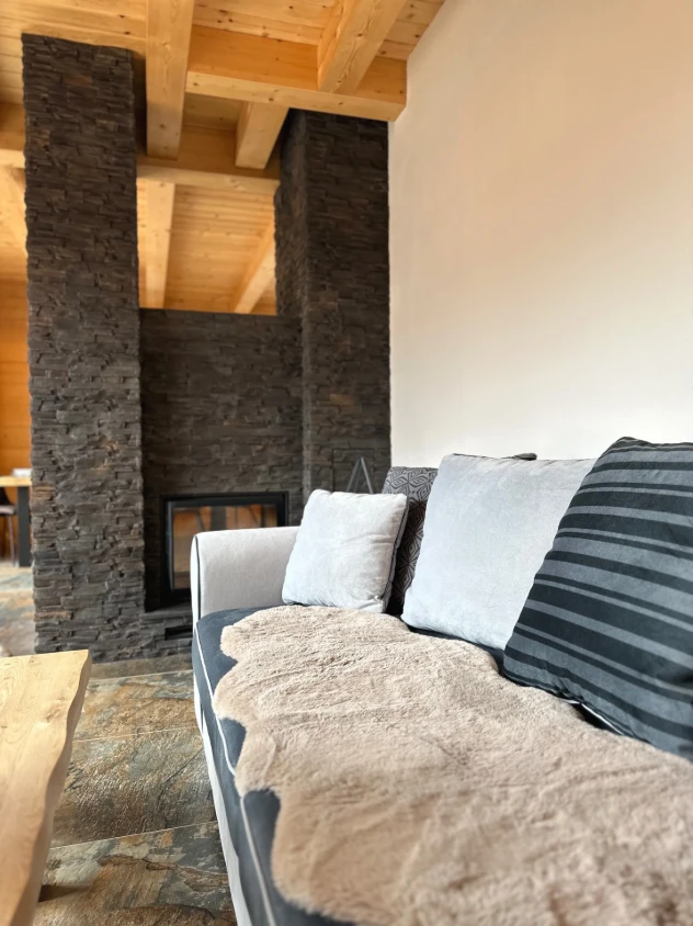 Při realizaci stavby jsme kladli důraz na použití tradičních materiálů, především dřeva a kamene, což zajišťuje příjemnou a útulnou atmosféru.